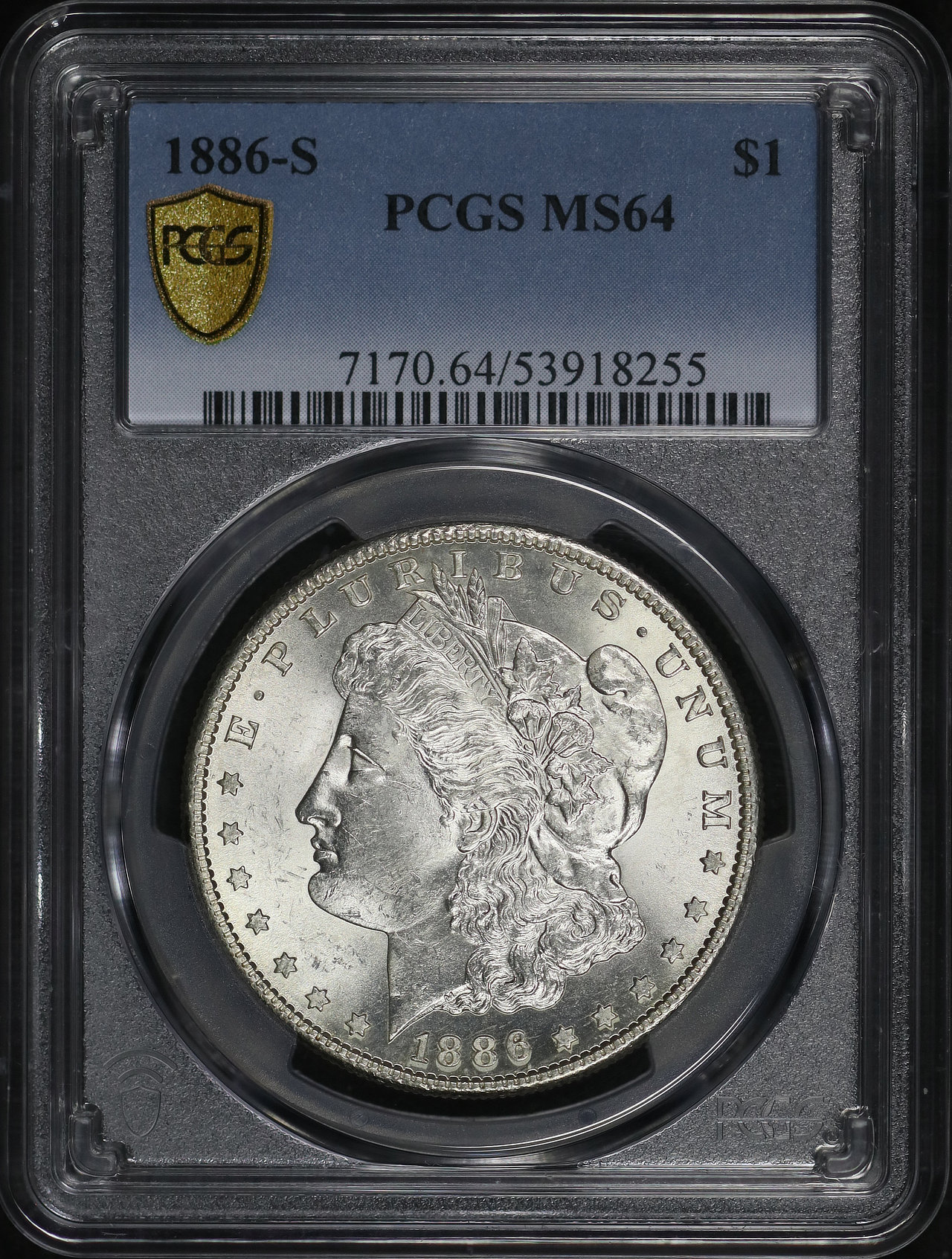1886-S Morgan Dollar PCGS MS-64 designed by George T. Morgan.