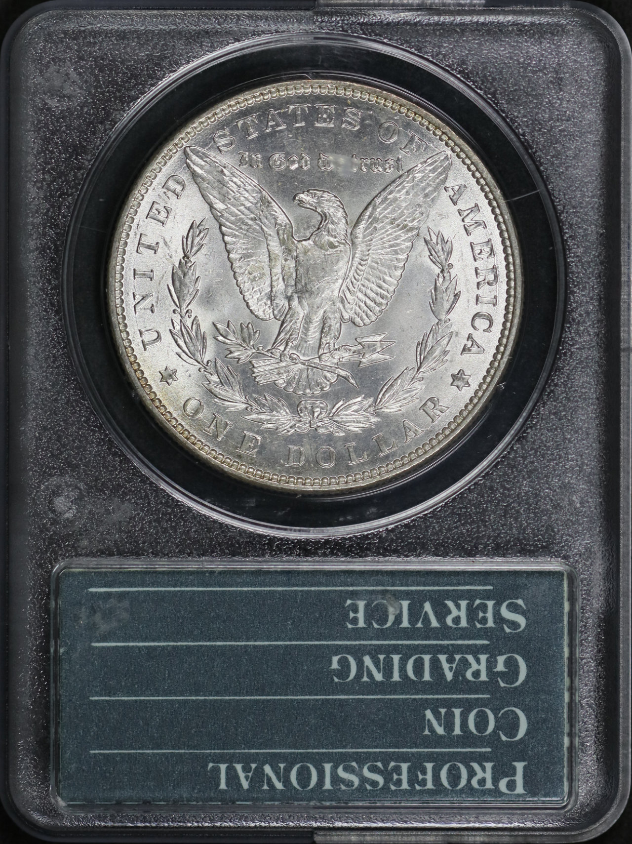 1887 Morgan Dollar PCGS MS-63 Old Green Rattler Holder designed by George T. Morgan.