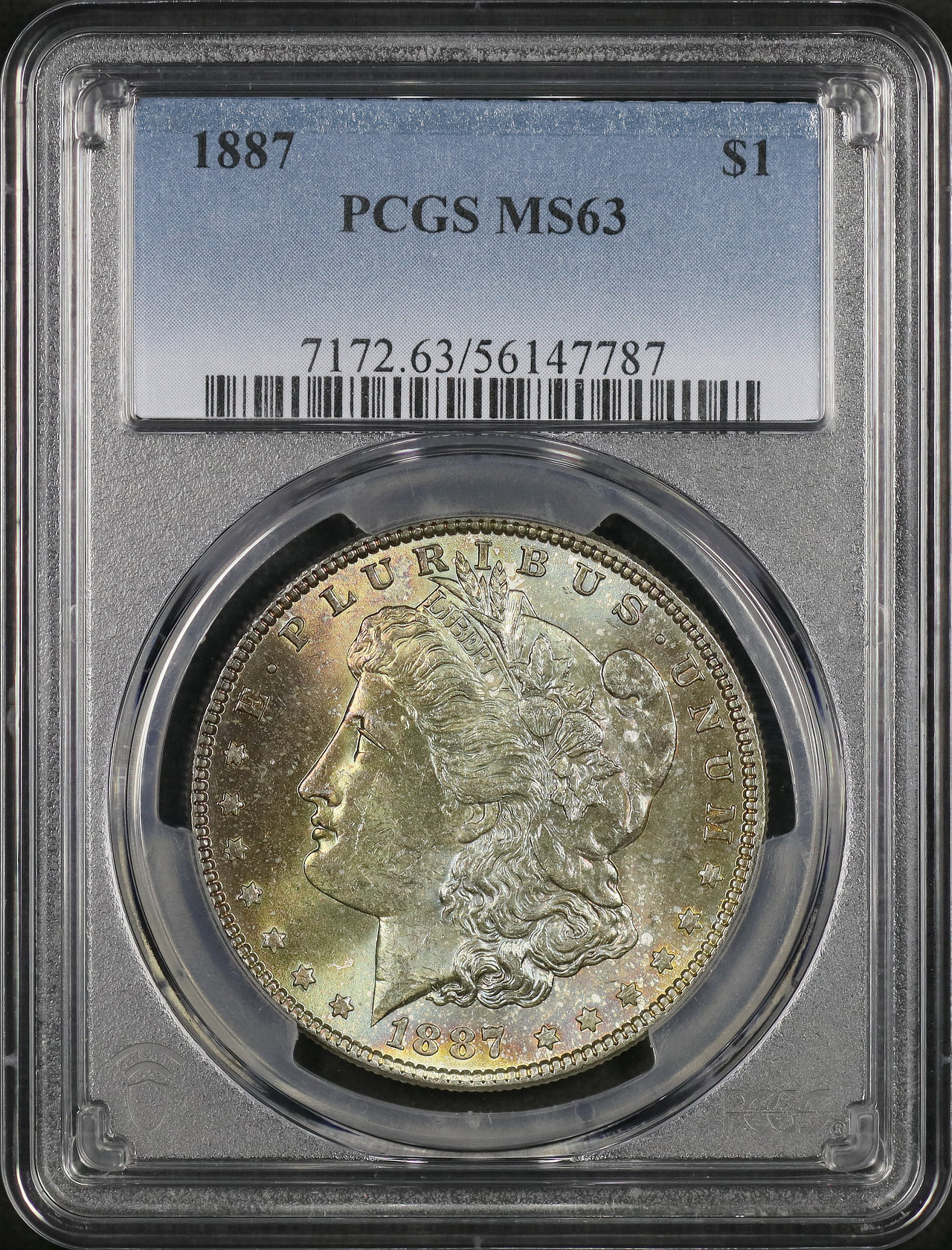 1887 Morgan Dollar PCGS MS-63 designed by George T. Morgan.