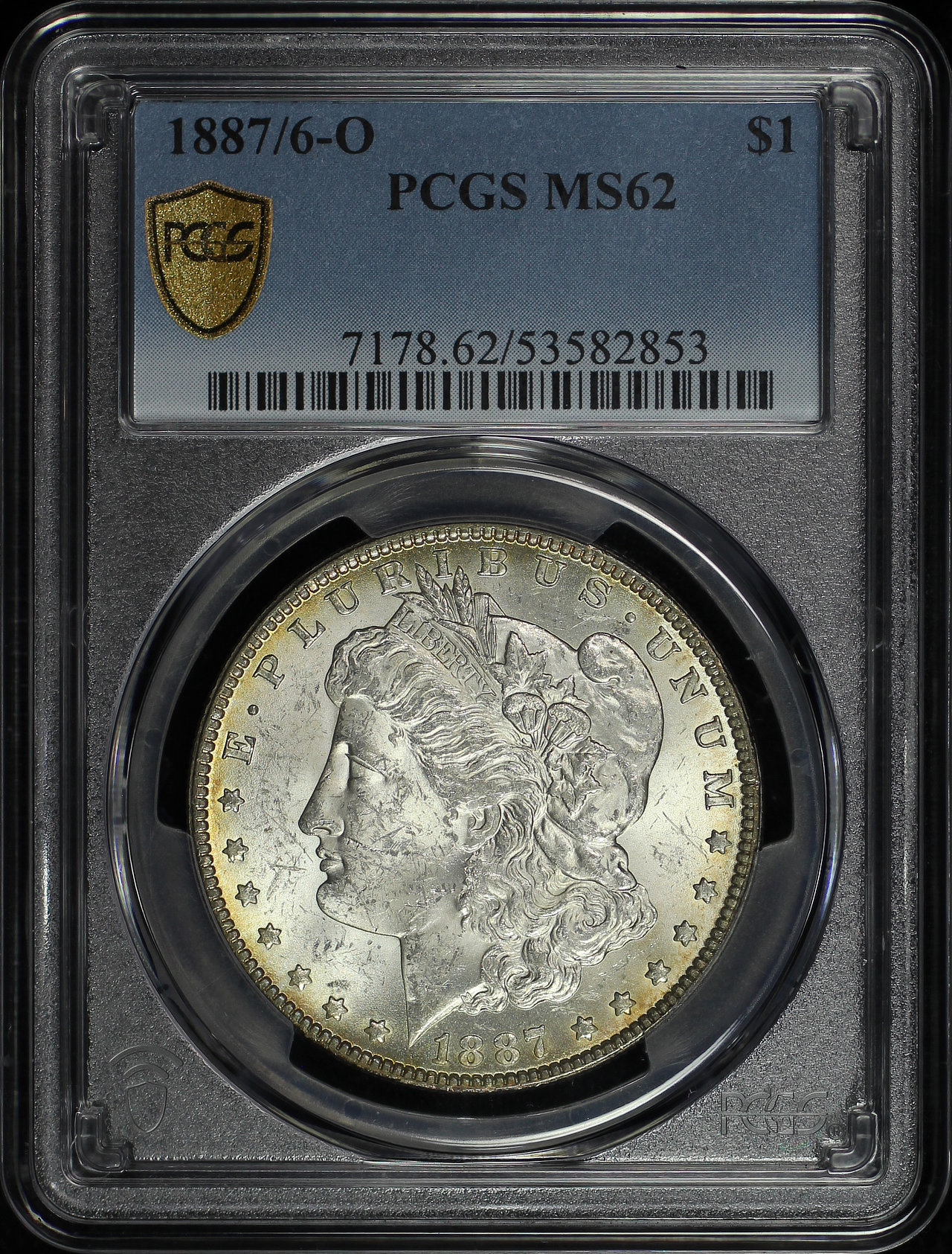 1887/6-O Morgan Dollar PCGS MS-62 designed by George T. Morgan.