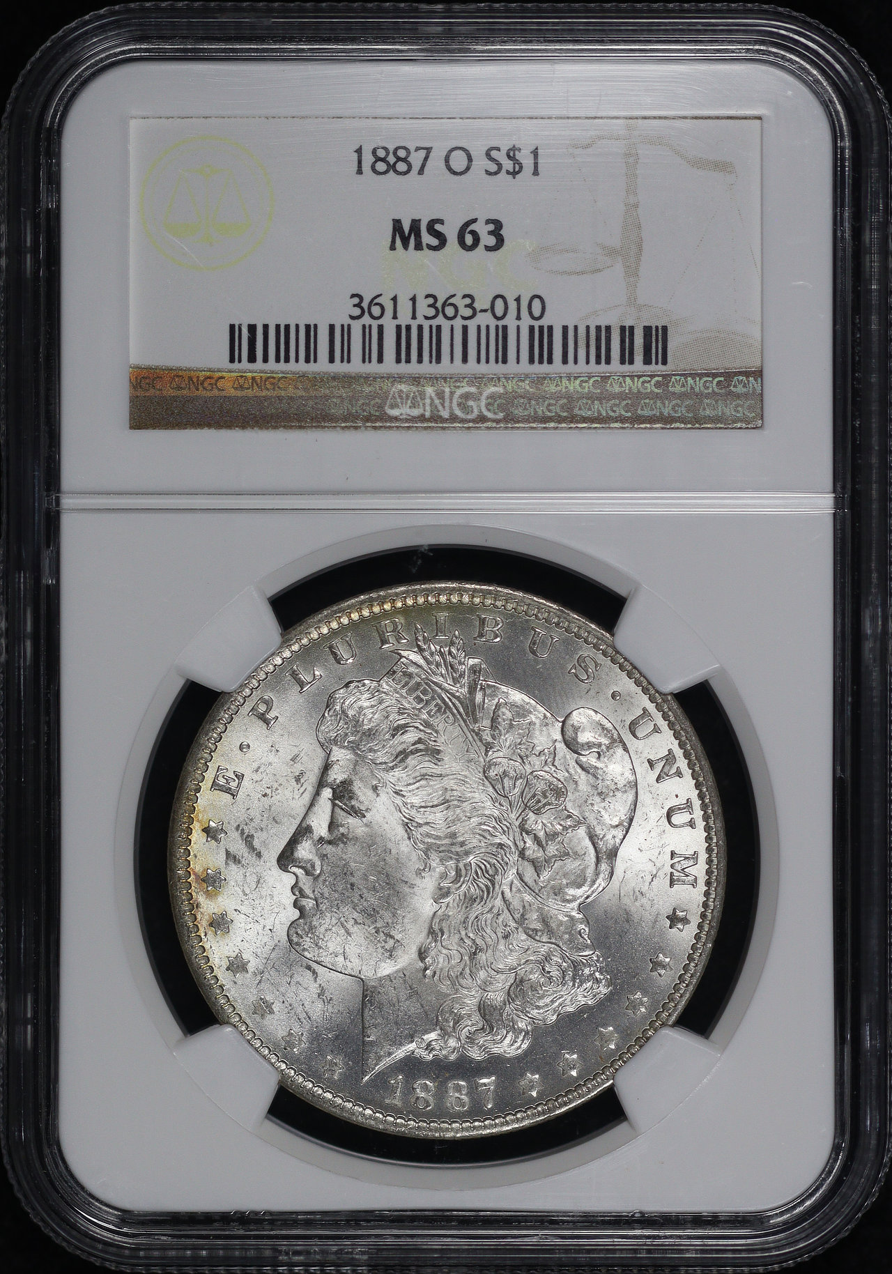 1887-O Morgan Dollar NGC MS-63. There is some faint orange toning on the obverse.