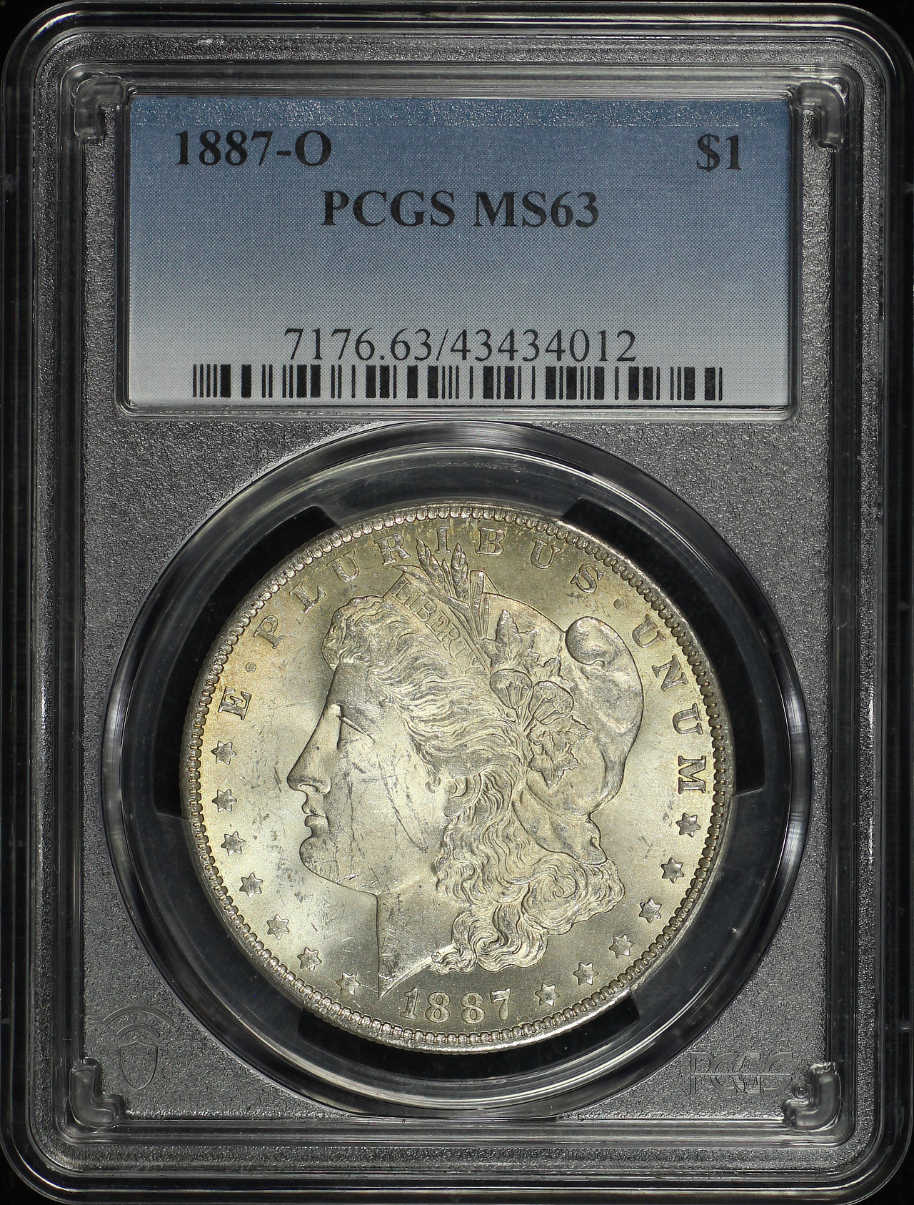 1887-O Morgan Dollar PCGS MS-63 designed by George T. Morgan. There is some faint gold toning on the obverse.