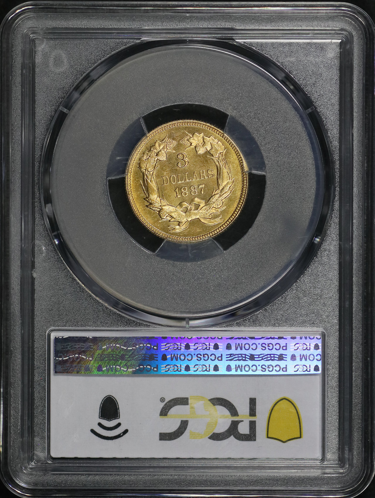 1887 Three Dollar PCGS MS-64 designed by James Barton Longacre.