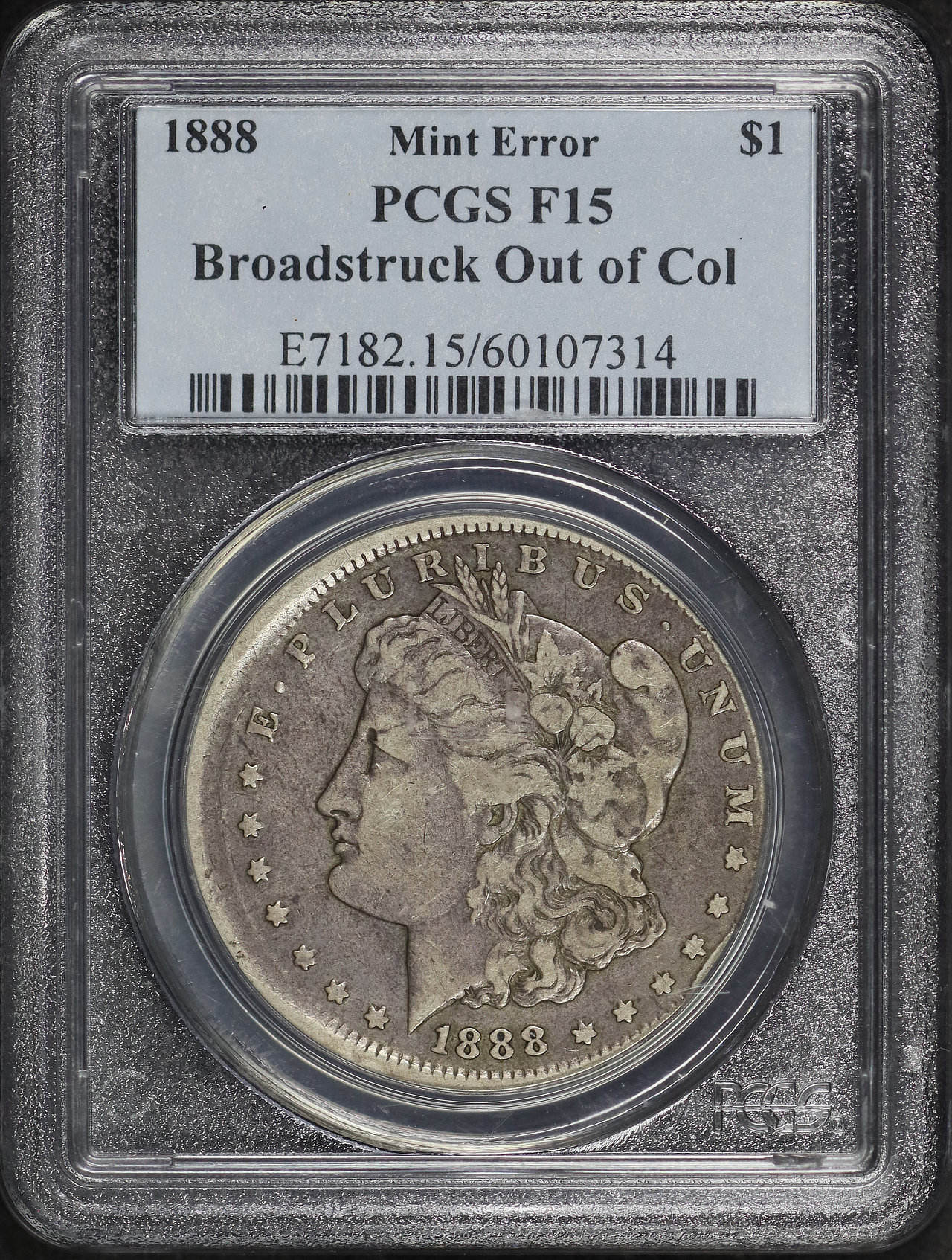 1888 Morgan Dollar PCGS F-15 Broadstruck Out of Collar Mint Error designed by George T. Morgan.