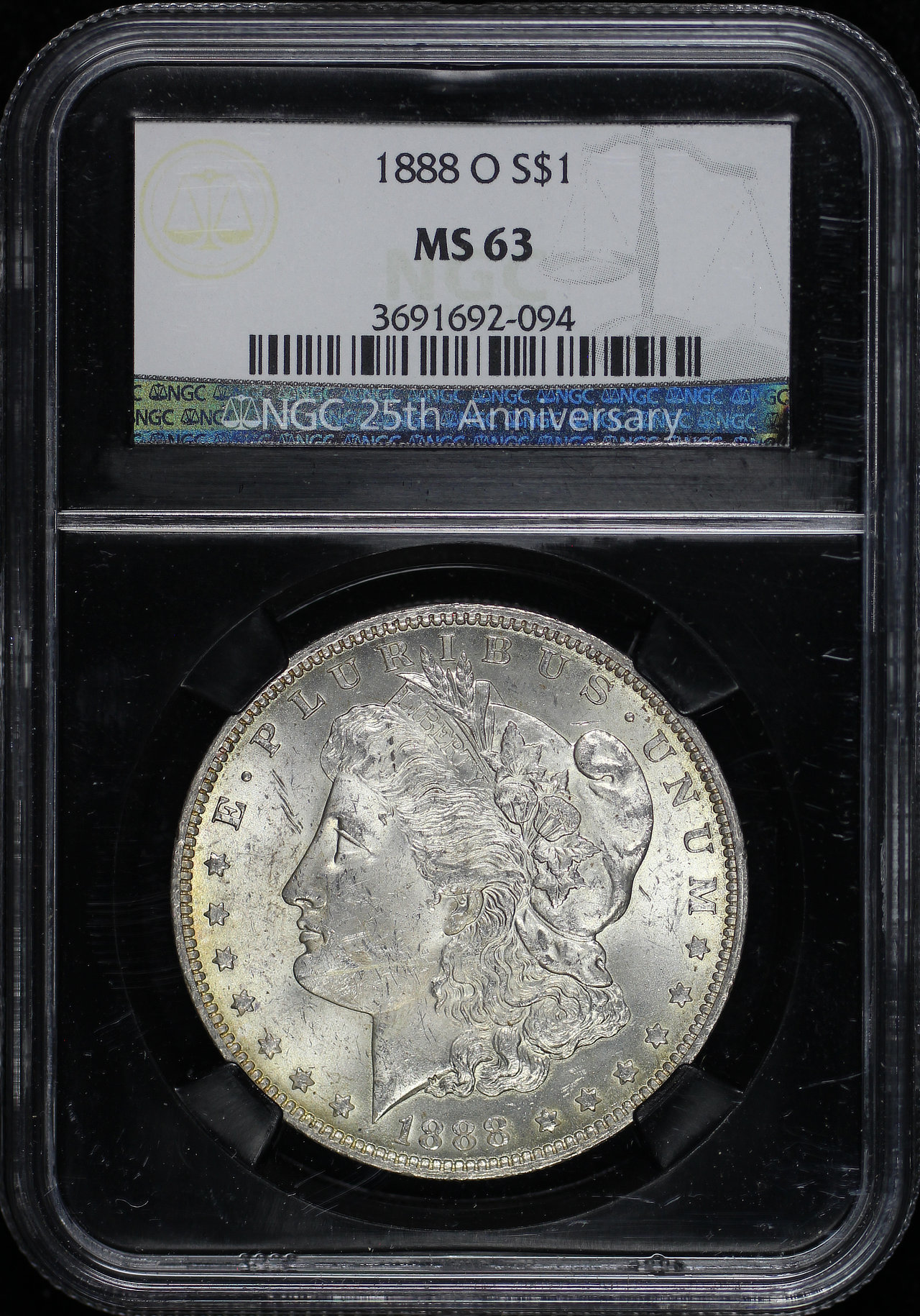 1888-O Morgan Dollar NGC MS-63 25th Anniversary Black Core.