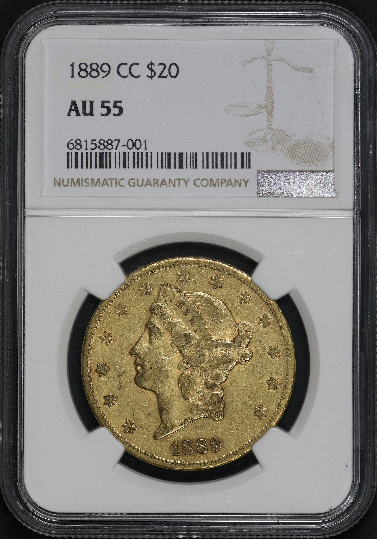 1889-CC Liberty Head $20 Type 3 NGC AU-55