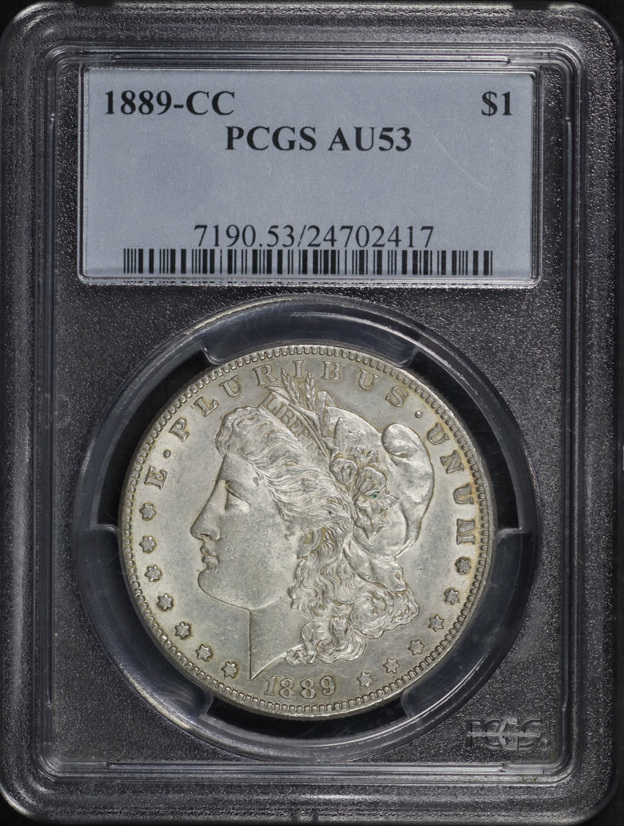 1889-CC Morgan Dollar PCGS AU-53 designed by George T. Morgan.