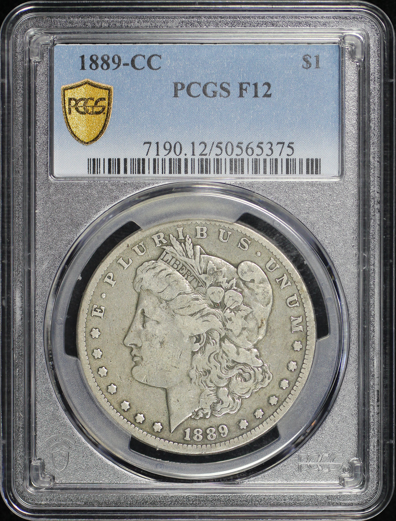 1889-CC Morgan Dollar PCGS F-12 designed by George T. Morgan.