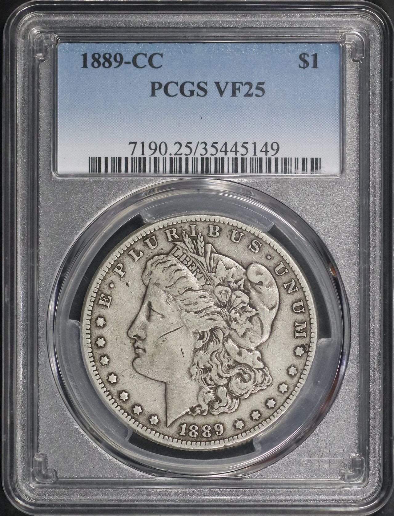 1889-CC Morgan Dollar PCGS VF-25 designed by George T. Morgan.