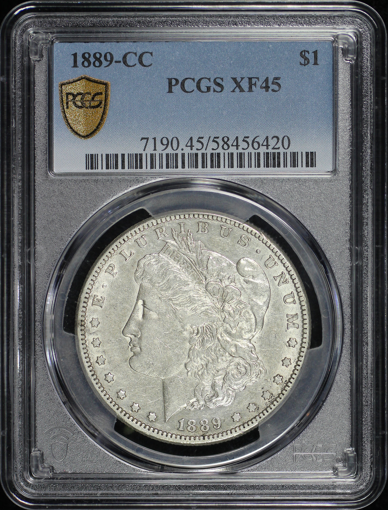 1889-CC Morgan Dollar PCGS XF-45 designed by George T. Morgan.