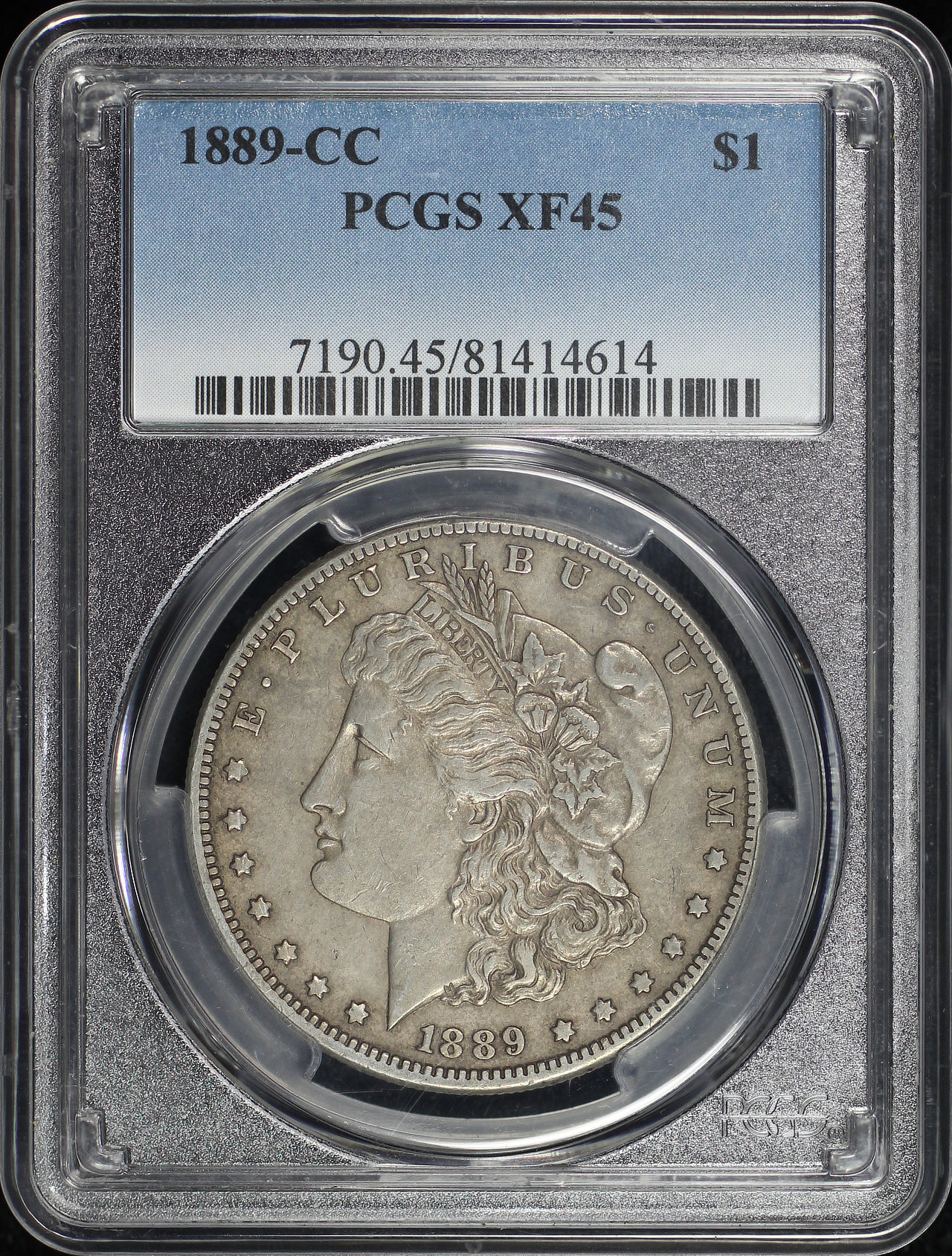 1889-CC Morgan Dollar PCGS XF-45 designed by George T. Morgan.
