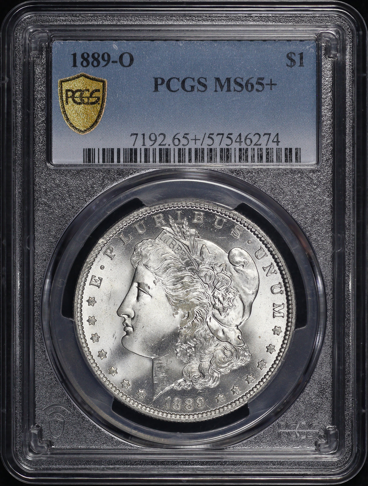 1889-O Morgan Dollar PCGS MS-65+ designed by George T. Morgan.