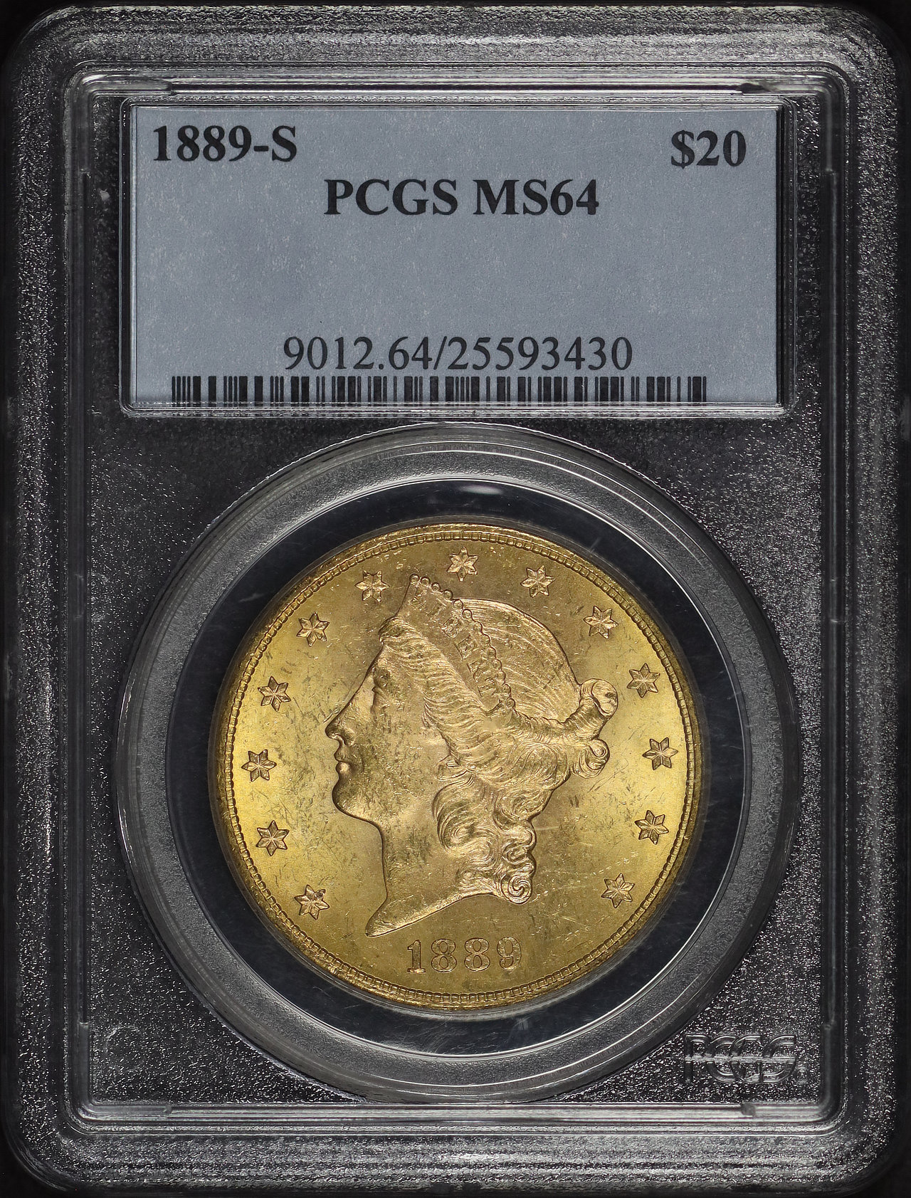 1889-S Liberty Head $20 Type 3 PCGS MS-64 designed by James Barton Longacre.