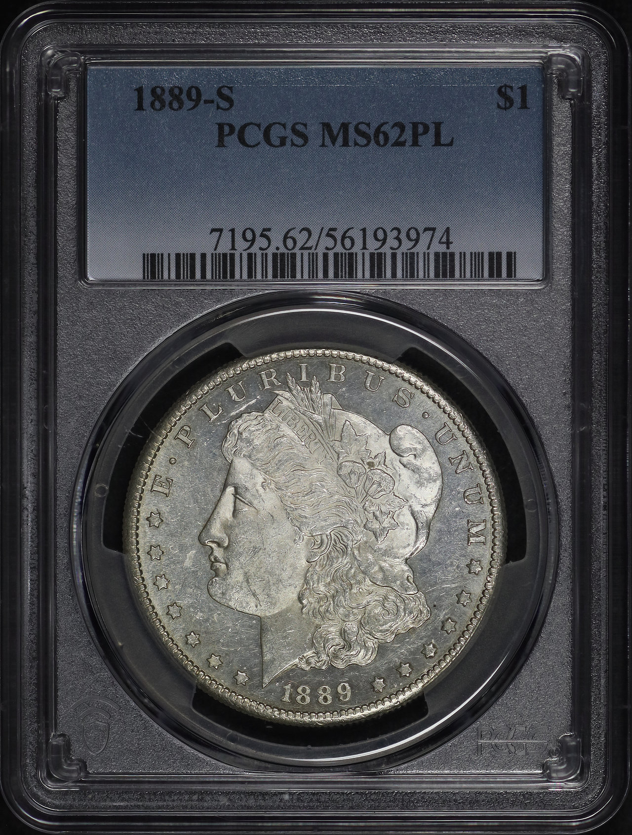 1889-S Morgan Dollar PCGS MS-62 PL designed by George T. Morgan.