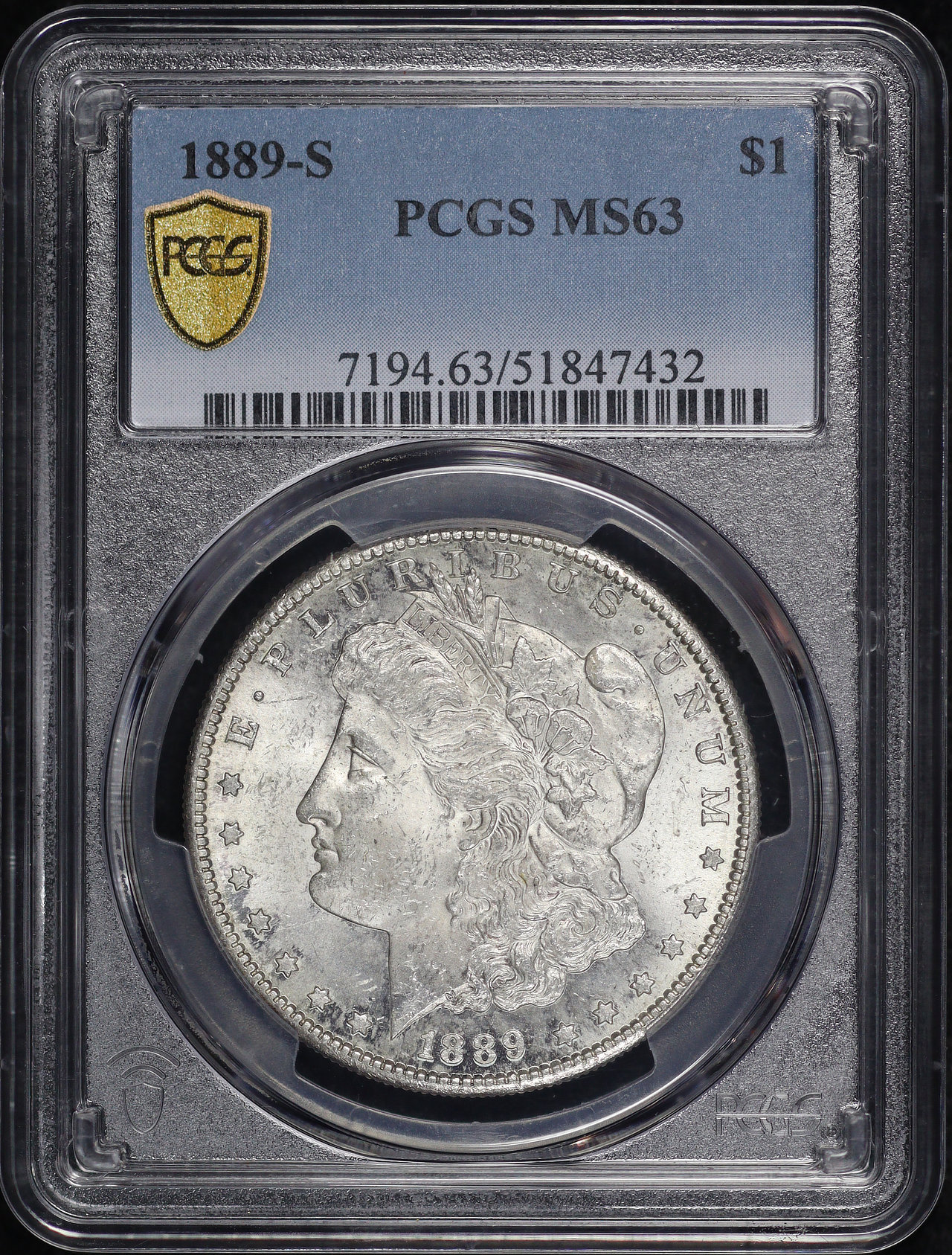 1889-S Morgan Dollar PCGS MS-63 designed by George T. Morgan.