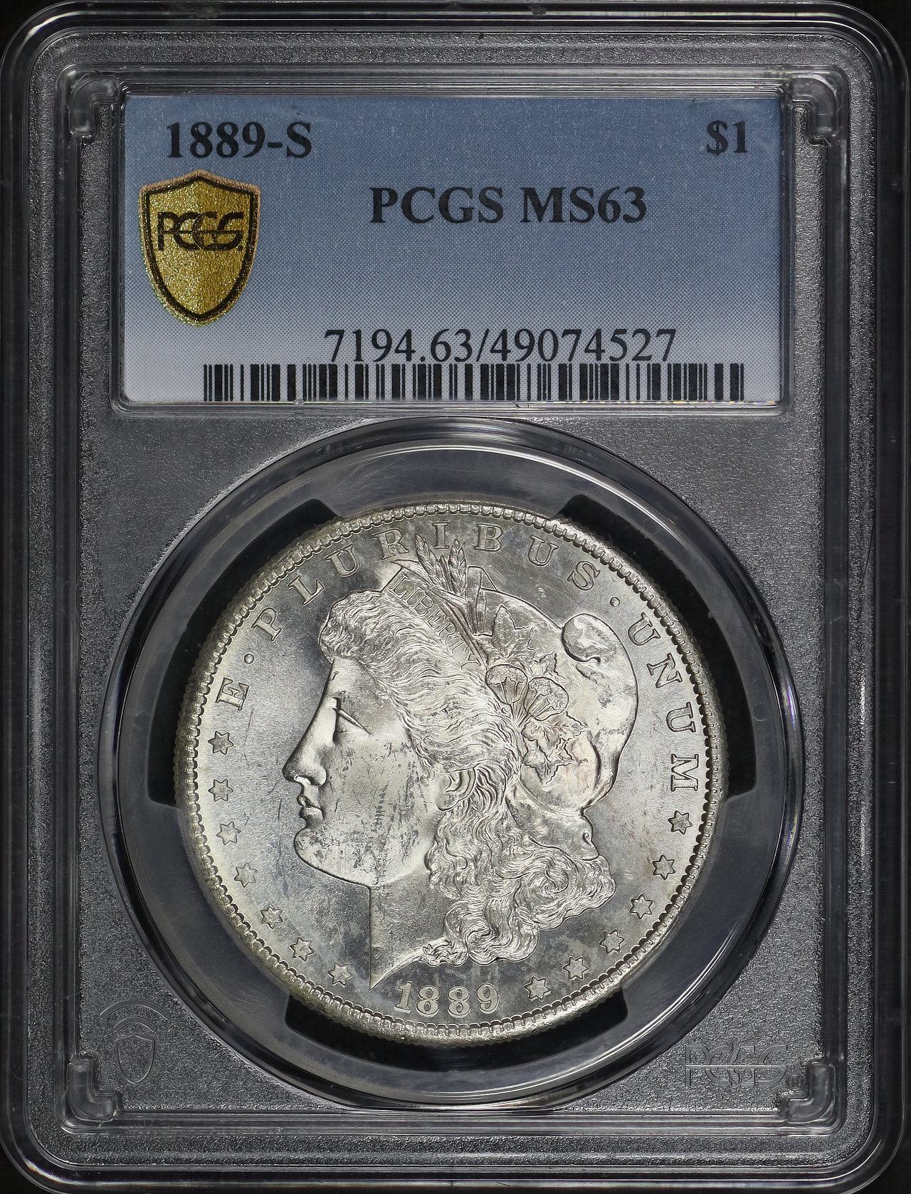 1889-S Morgan Dollar PCGS MS-63 designed by George T. Morgan.