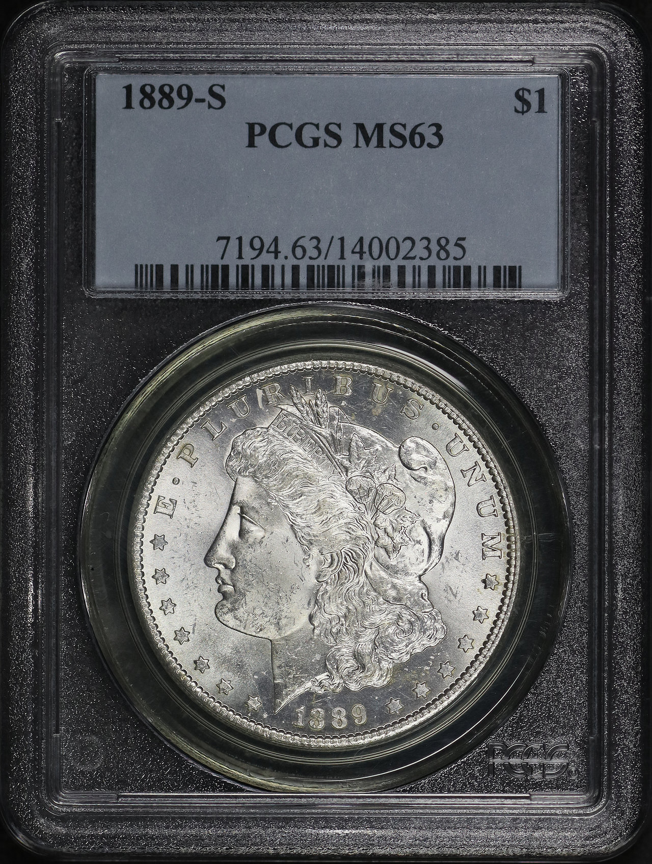 1889-S Morgan Dollar PCGS MS-63 designed by George T. Morgan.