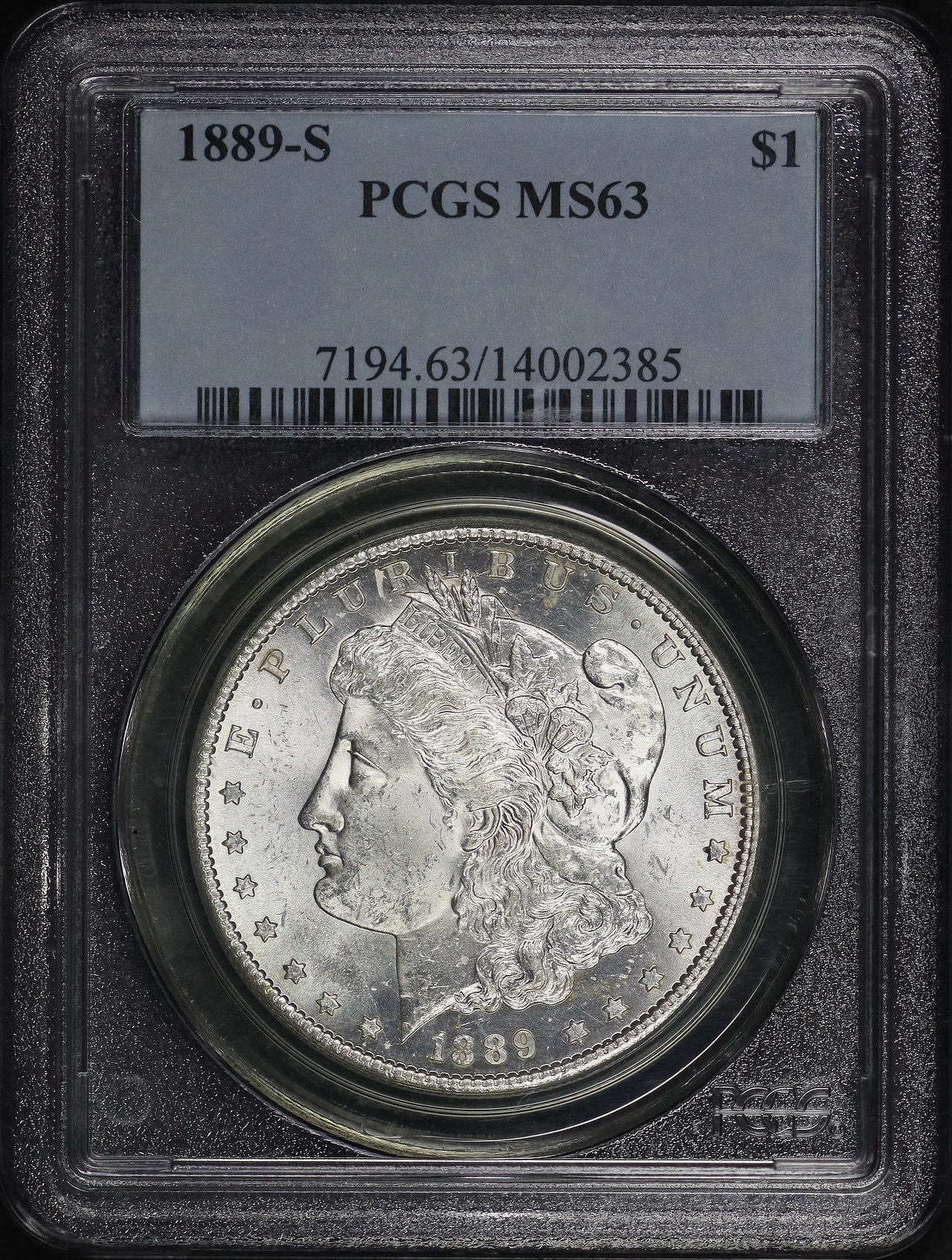 1889-S Morgan Dollar PCGS MS-63 designed by George T. Morgan.