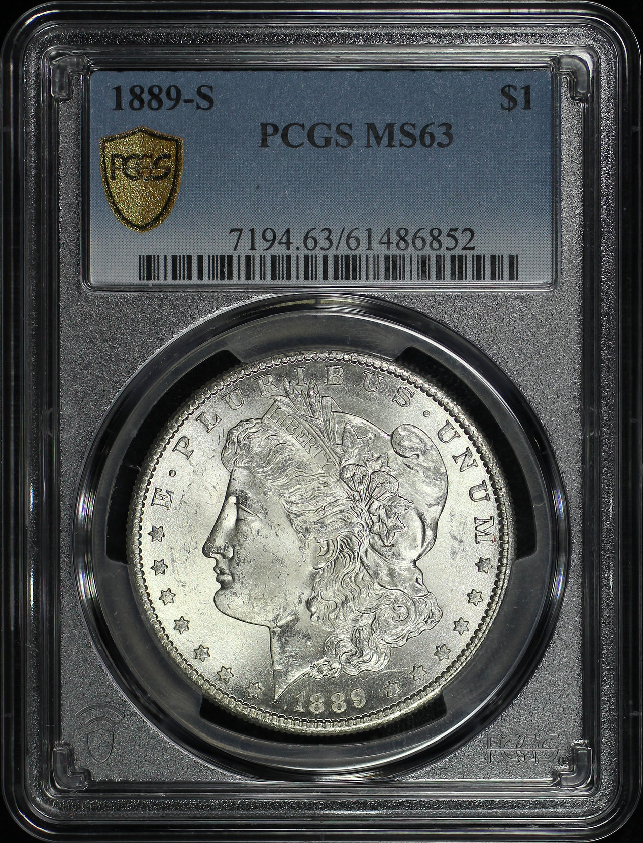 1889-S Morgan Dollar PCGS MS-63 designed by George T. Morgan.