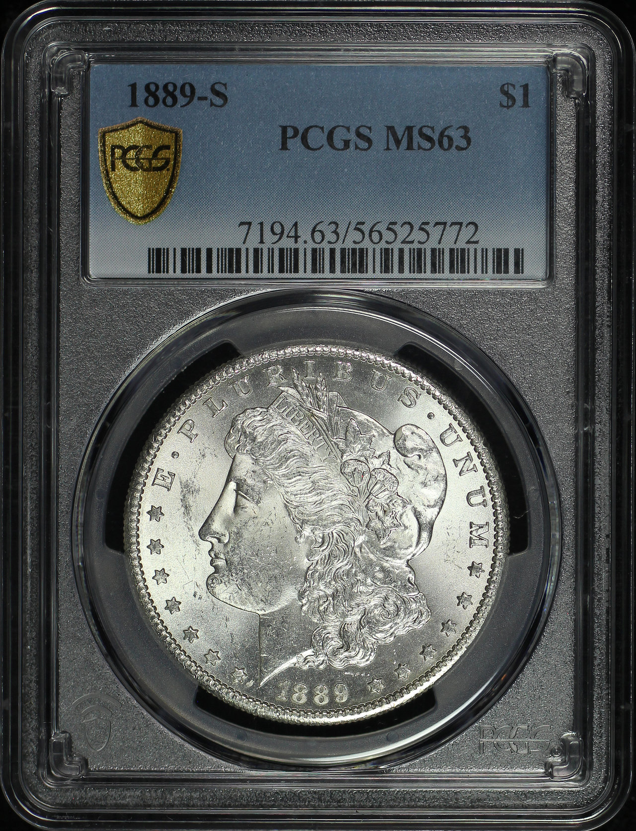 1889-S Morgan Dollar PCGS MS-63 designed by George T. Morgan.