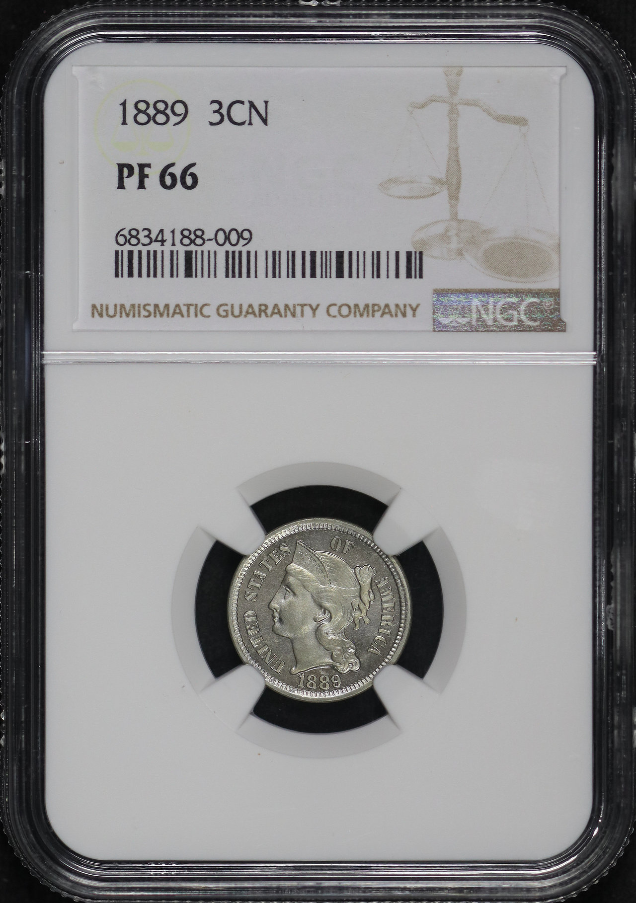 1889 Three Cent Nickel NGC PF-66.