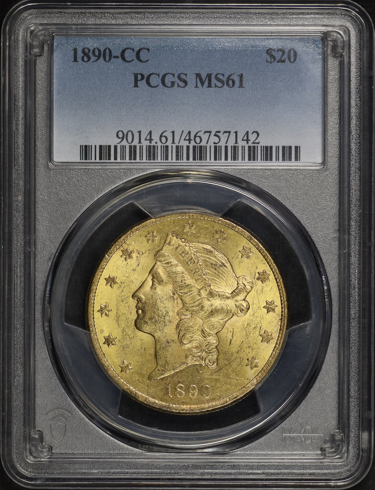 1890-CC Liberty Head $20 Type 3 PCGS MS-61 designed by James Barton Longacre.