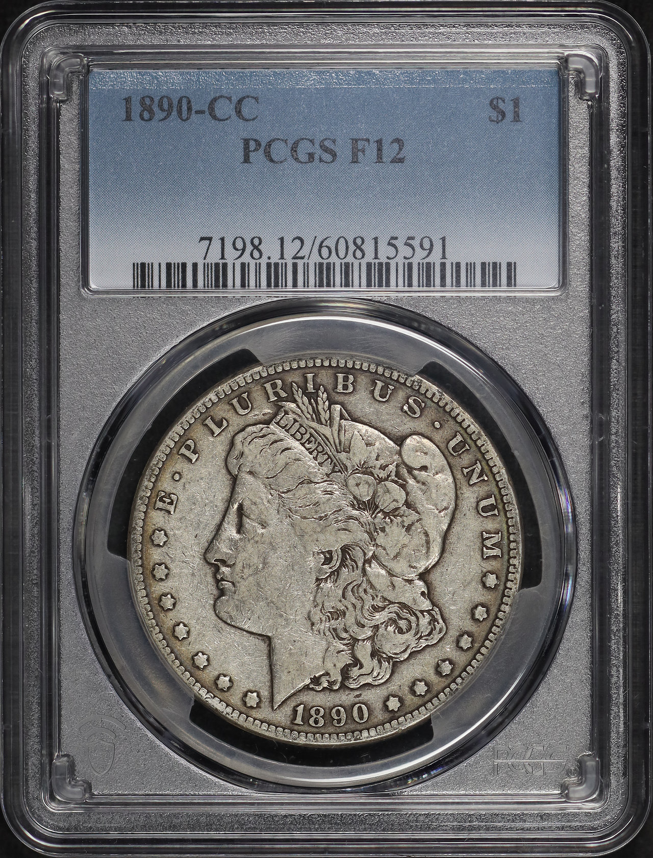 1890-CC Morgan Dollar PCGS F-12 designed by George T. Morgan.