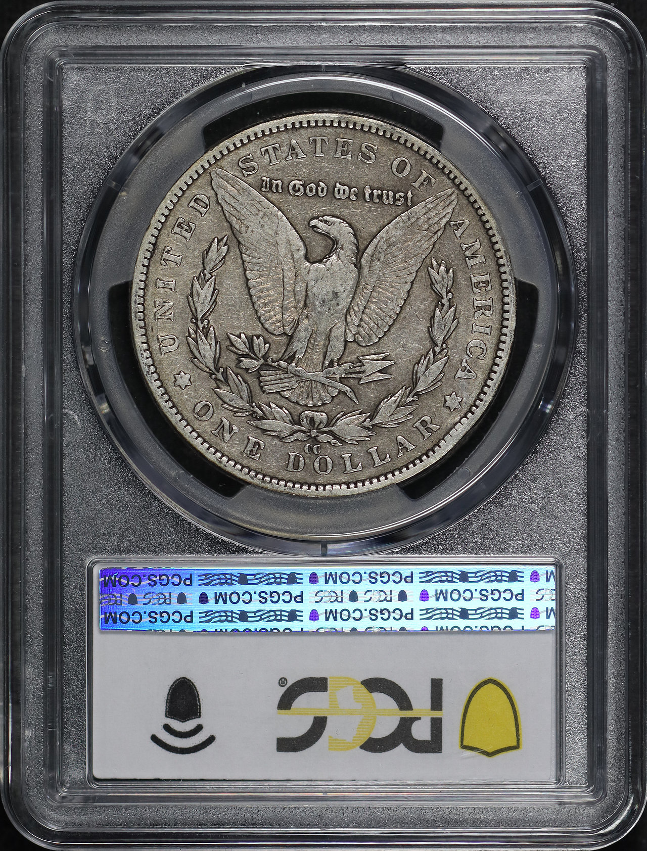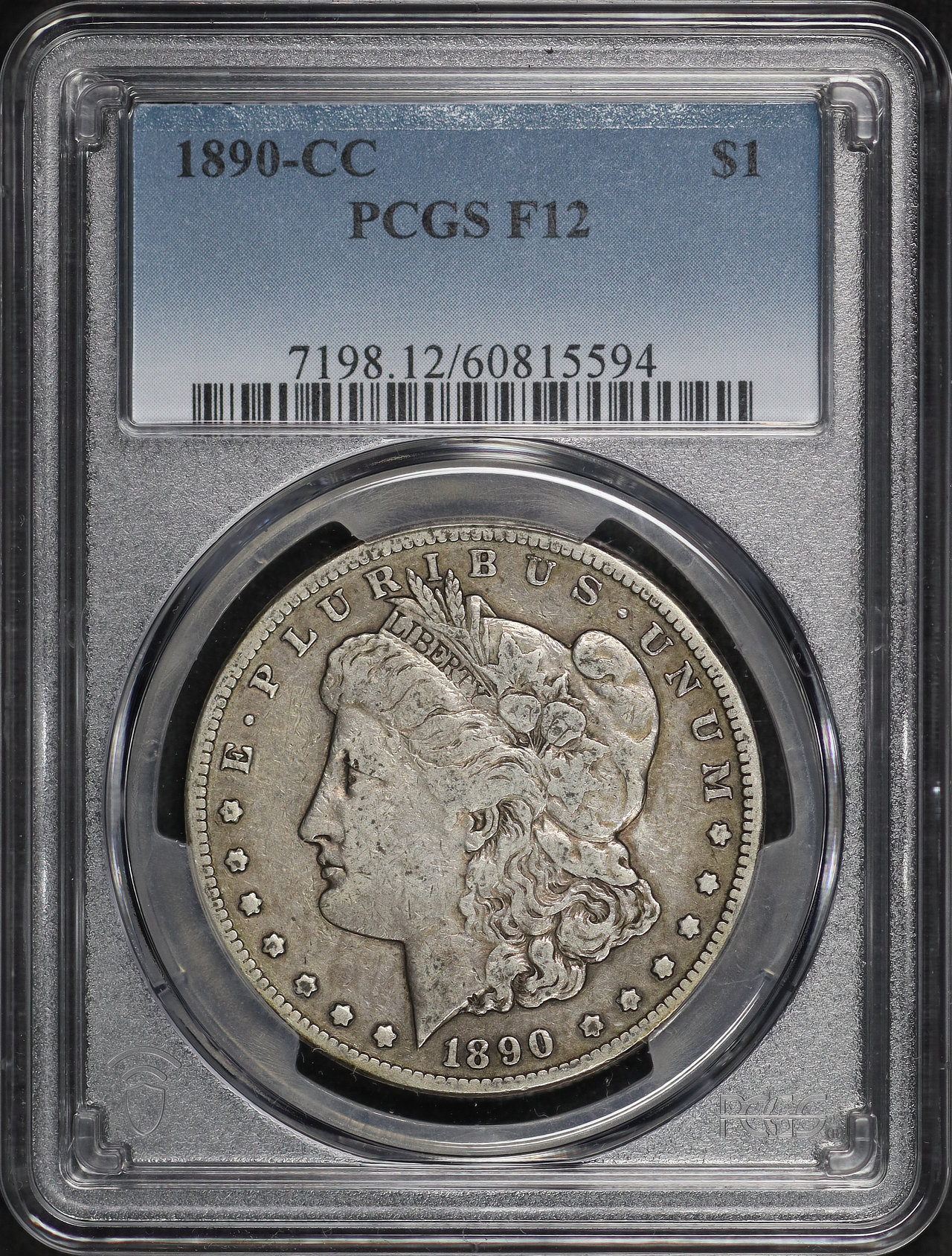 1890-CC Morgan Dollar PCGS F-12 designed by George T. Morgan.