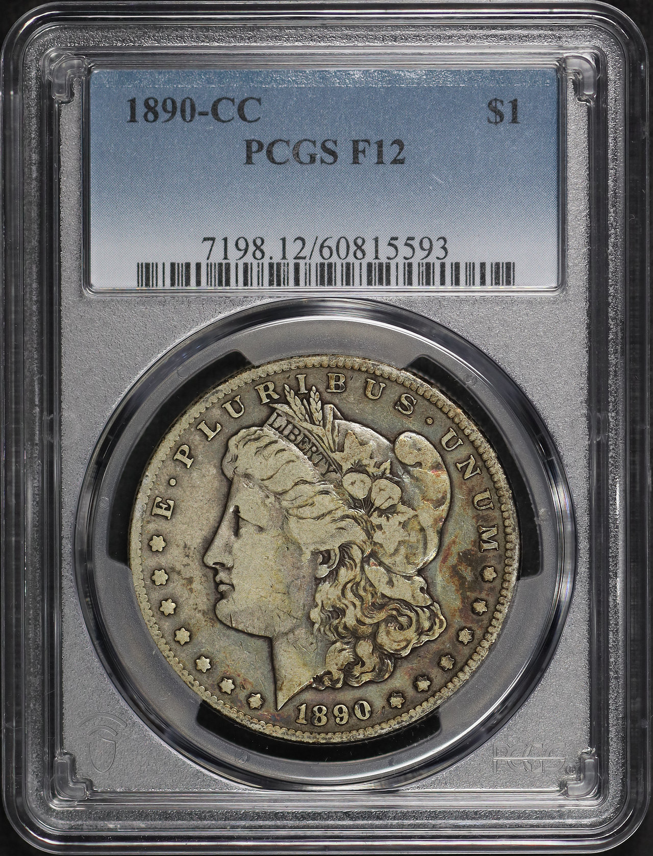 1890-CC Morgan Dollar PCGS F-12 designed by George T. Morgan.