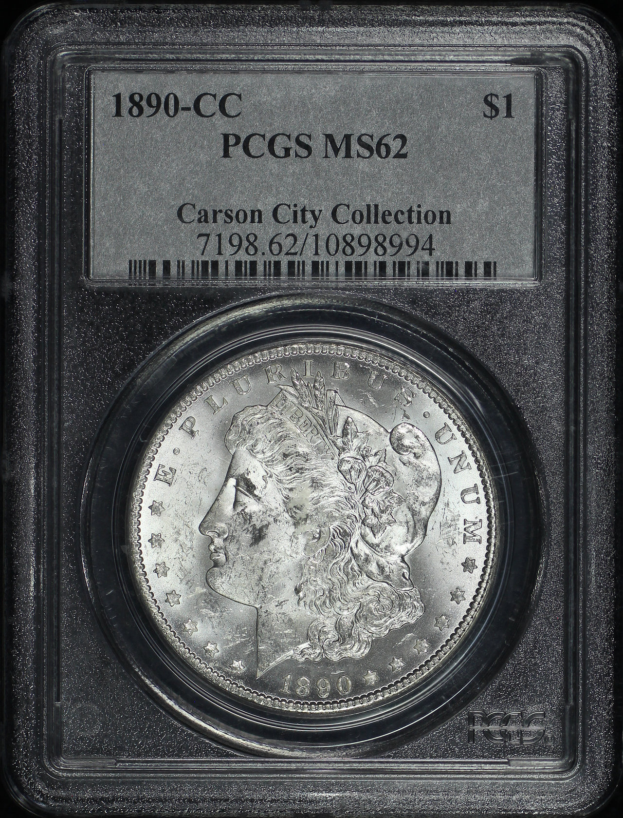 1890-CC Morgan Dollar PCGS MS-62 designed by George T. Morgan.
