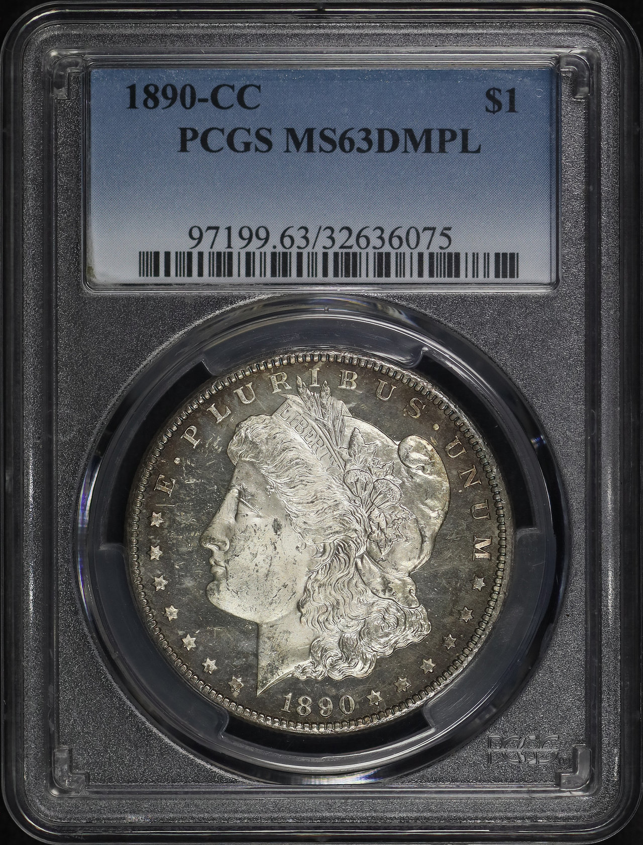 1890-CC Morgan Dollar PCGS MS-63 DMPL designed by George T. Morgan.