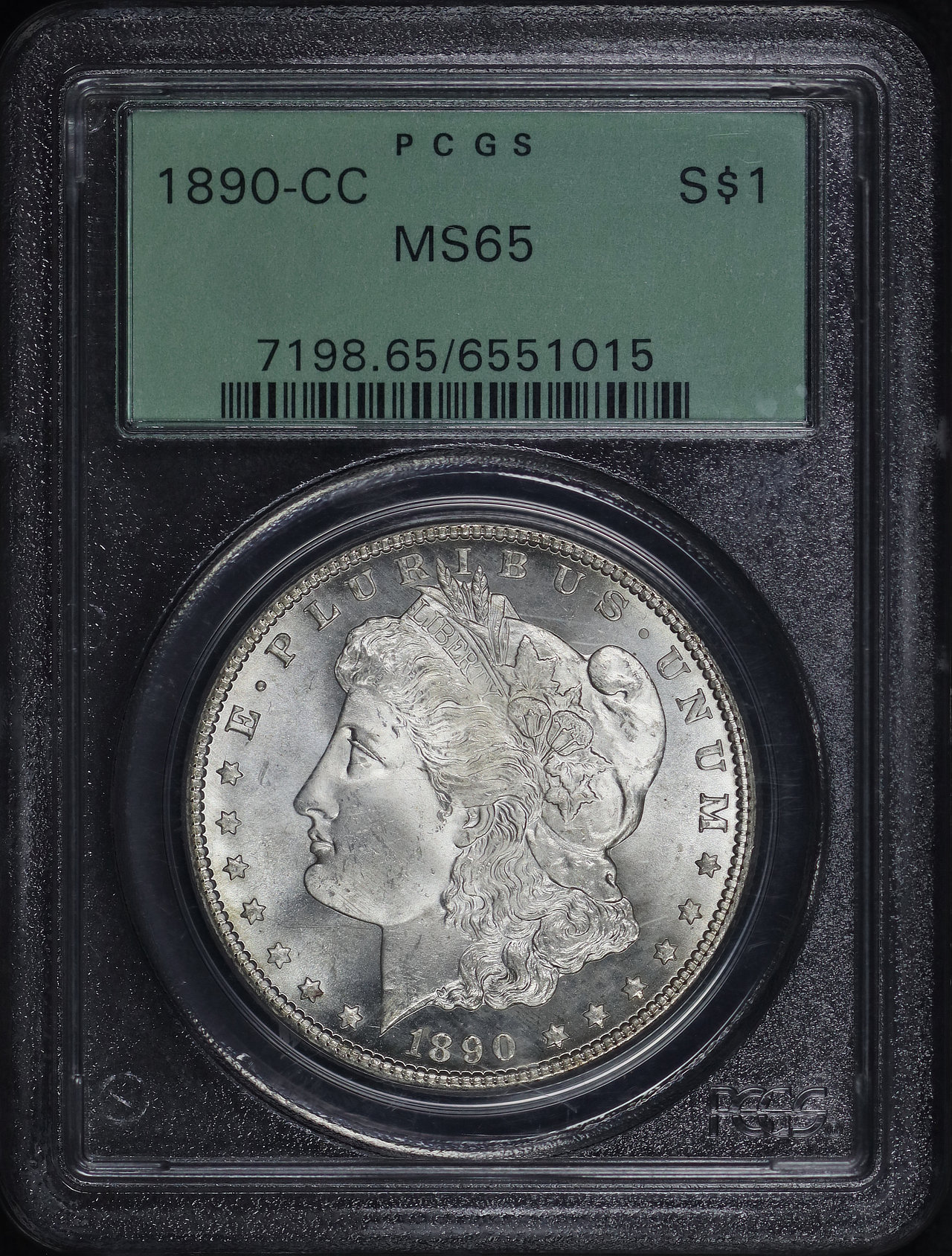 1890-CC Morgan Dollar PCGS MS-65 Old Green Holder designed by George T. Morgan.