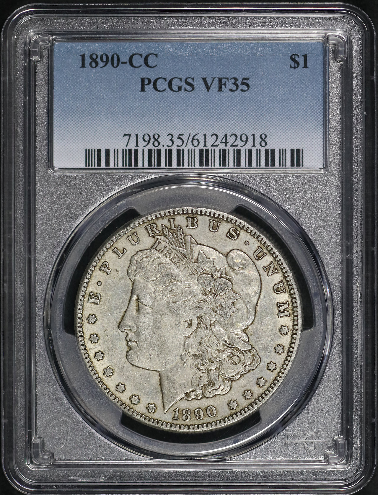 1890-CC Morgan Dollar PCGS VF-35 designed by George T. Morgan.