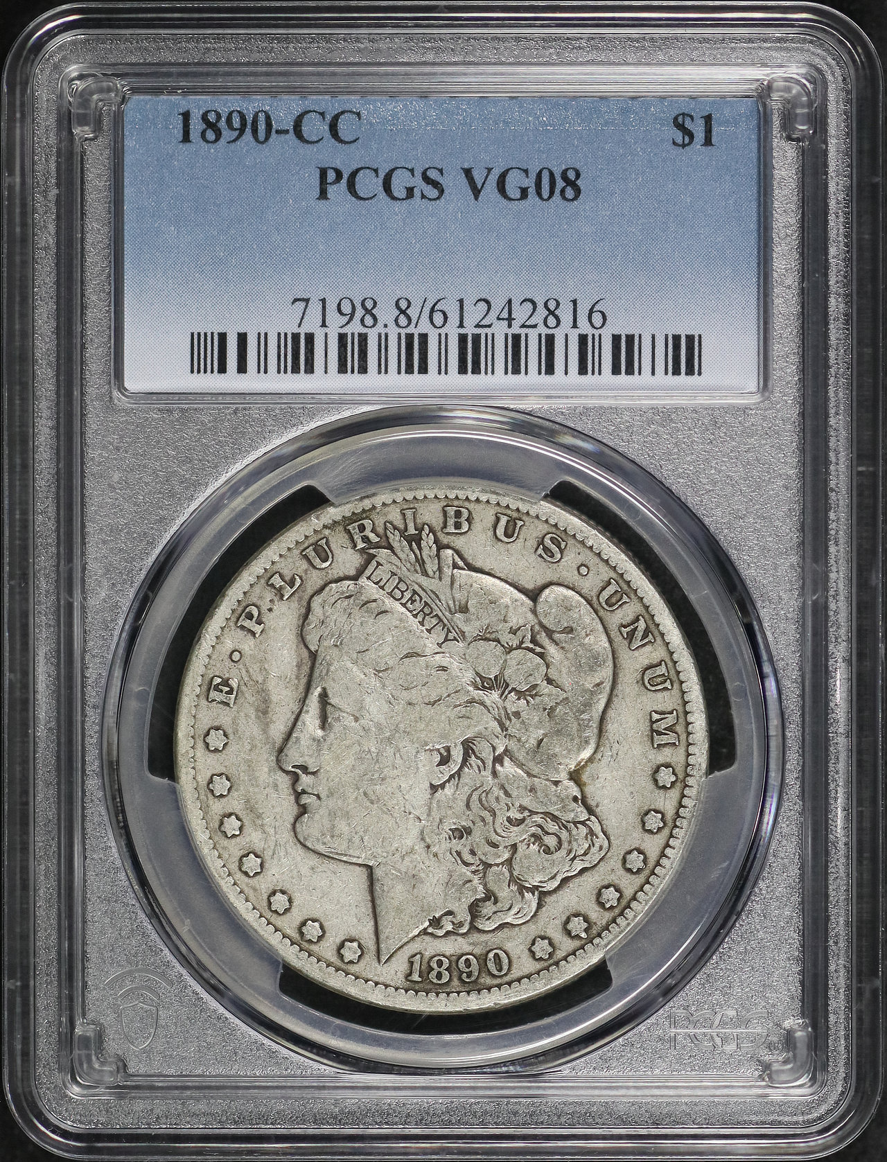 1890-CC Morgan Dollar PCGS VG-08 designed by George T. Morgan.