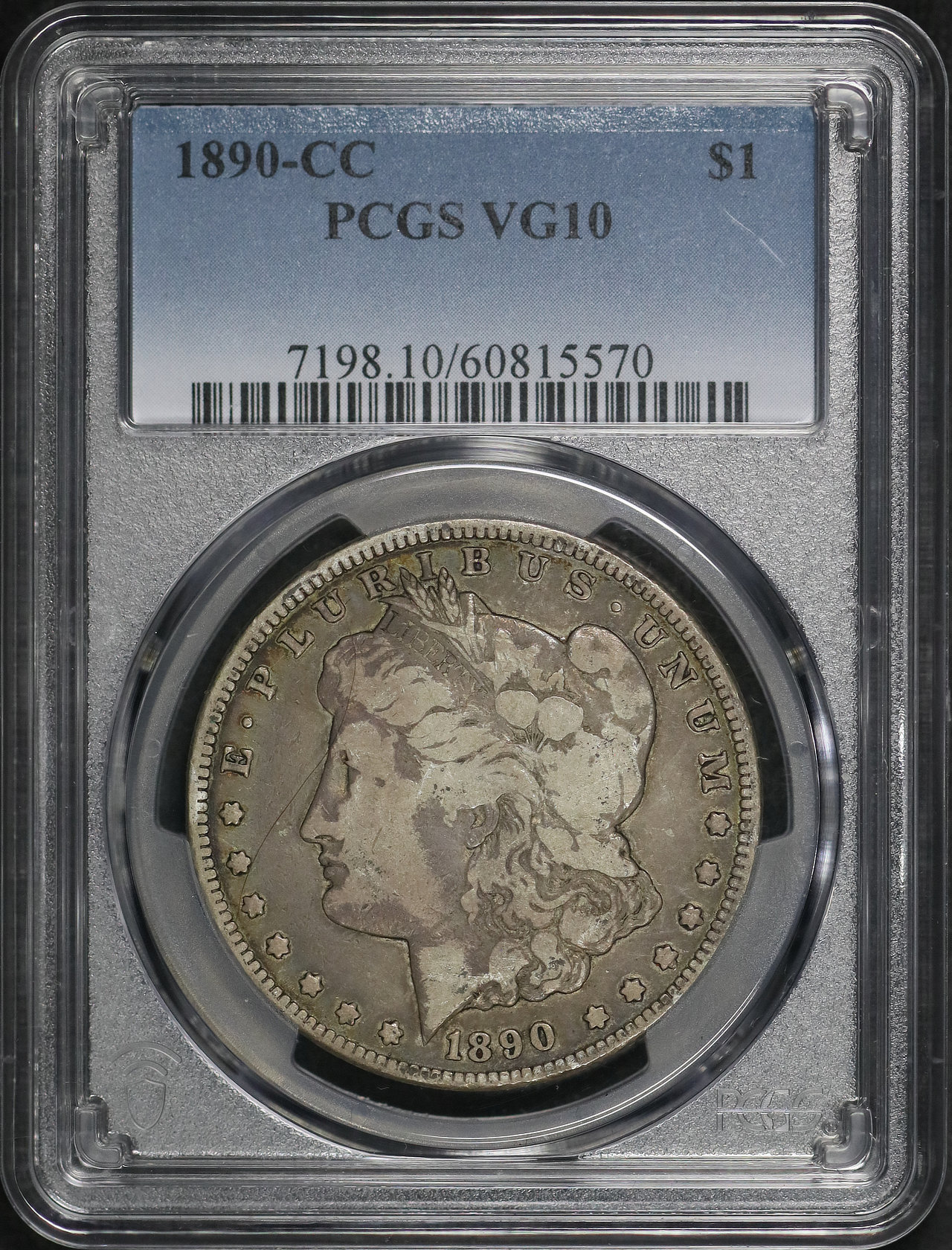 1890-CC Morgan Dollar PCGS VG-10 designed by George T. Morgan.