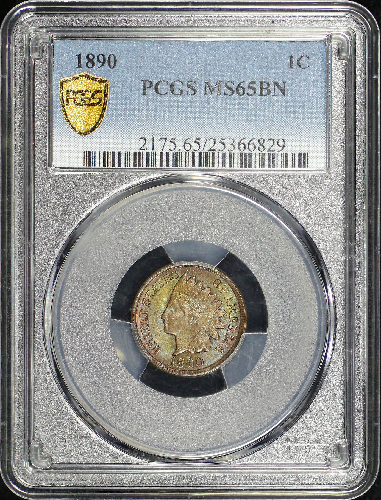 1890 Indian Cent PCGS MS-65 BN designed by James Barton Longacre.