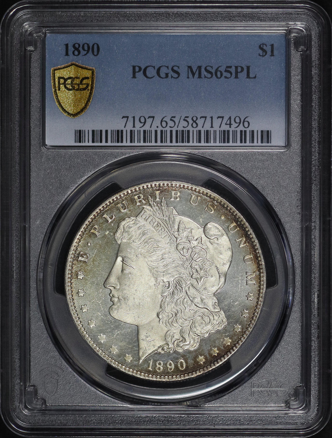 1890 Morgan Dollar PCGS MS-65 PL designed by George T. Morgan.