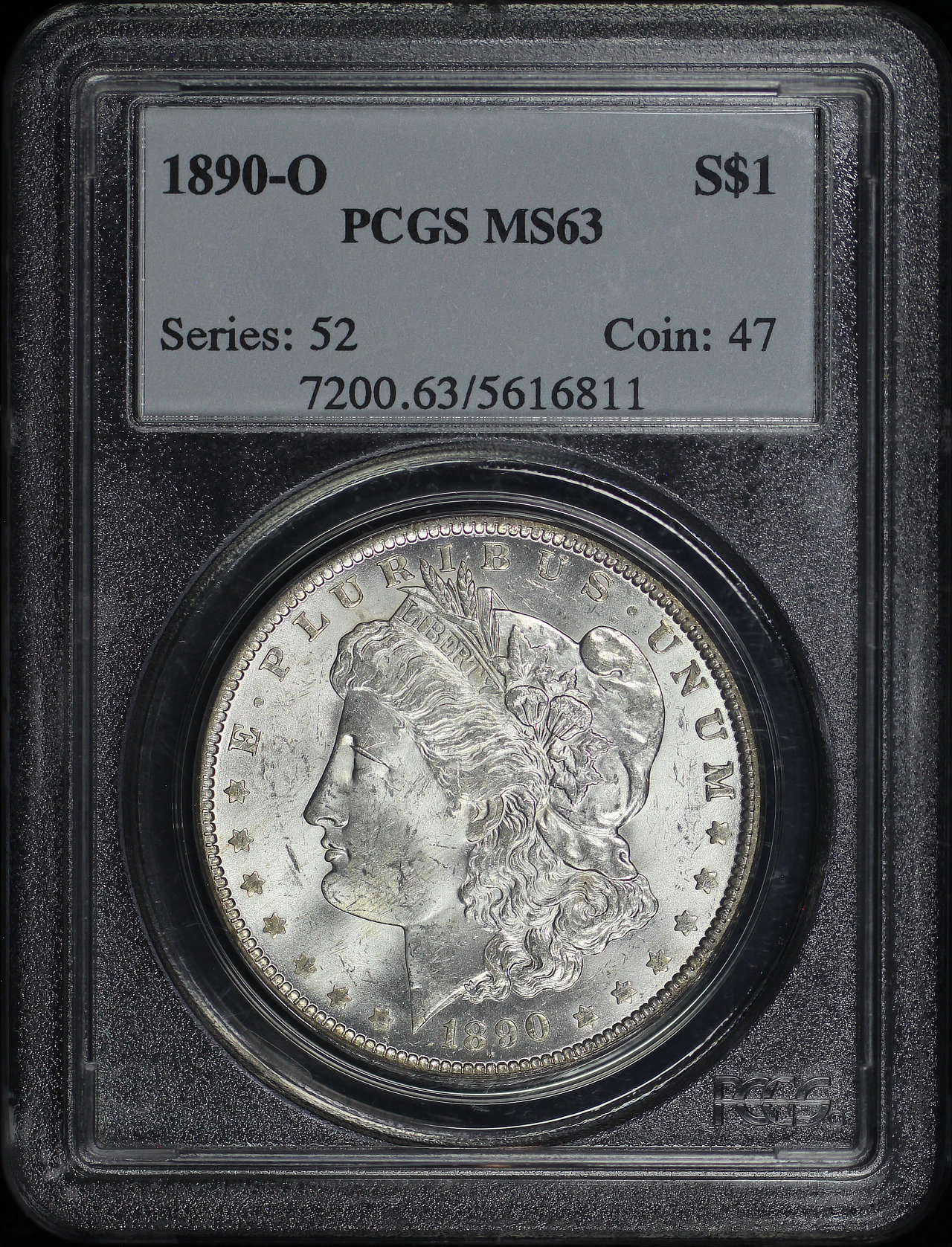 1890-O Morgan Dollar PCGS MS-63 designed by George T. Morgan.