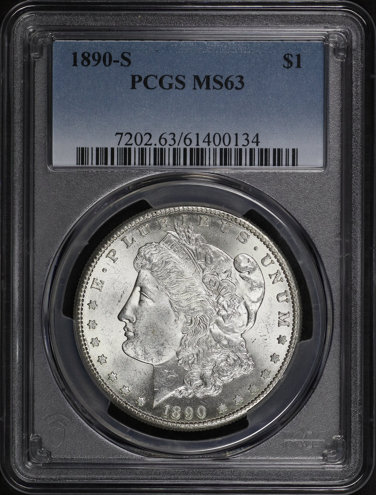 1890-S Morgan Dollar PCGS MS-63 designed by George T. Morgan.