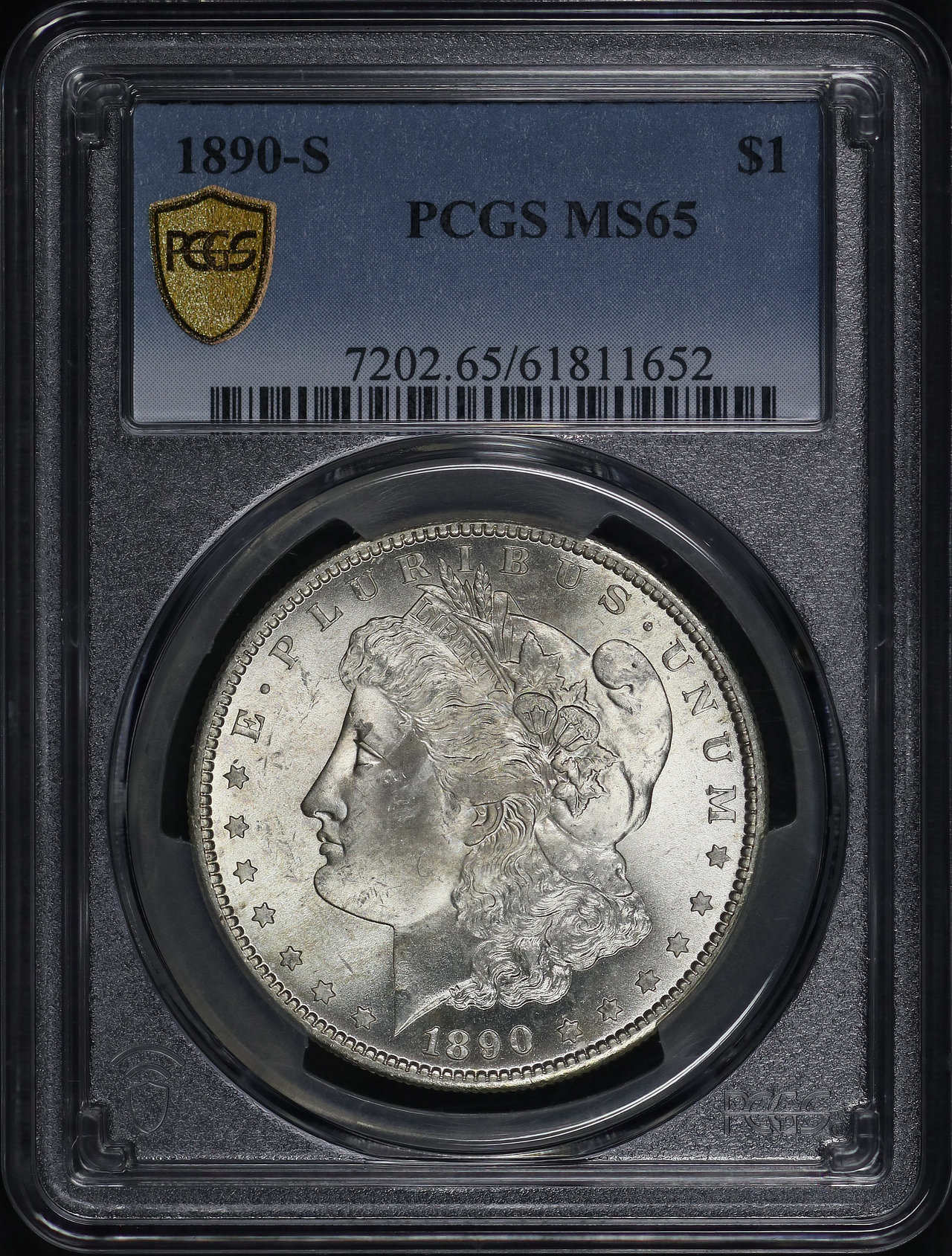 1890-S Morgan Dollar PCGS MS-65 designed by George T. Morgan.