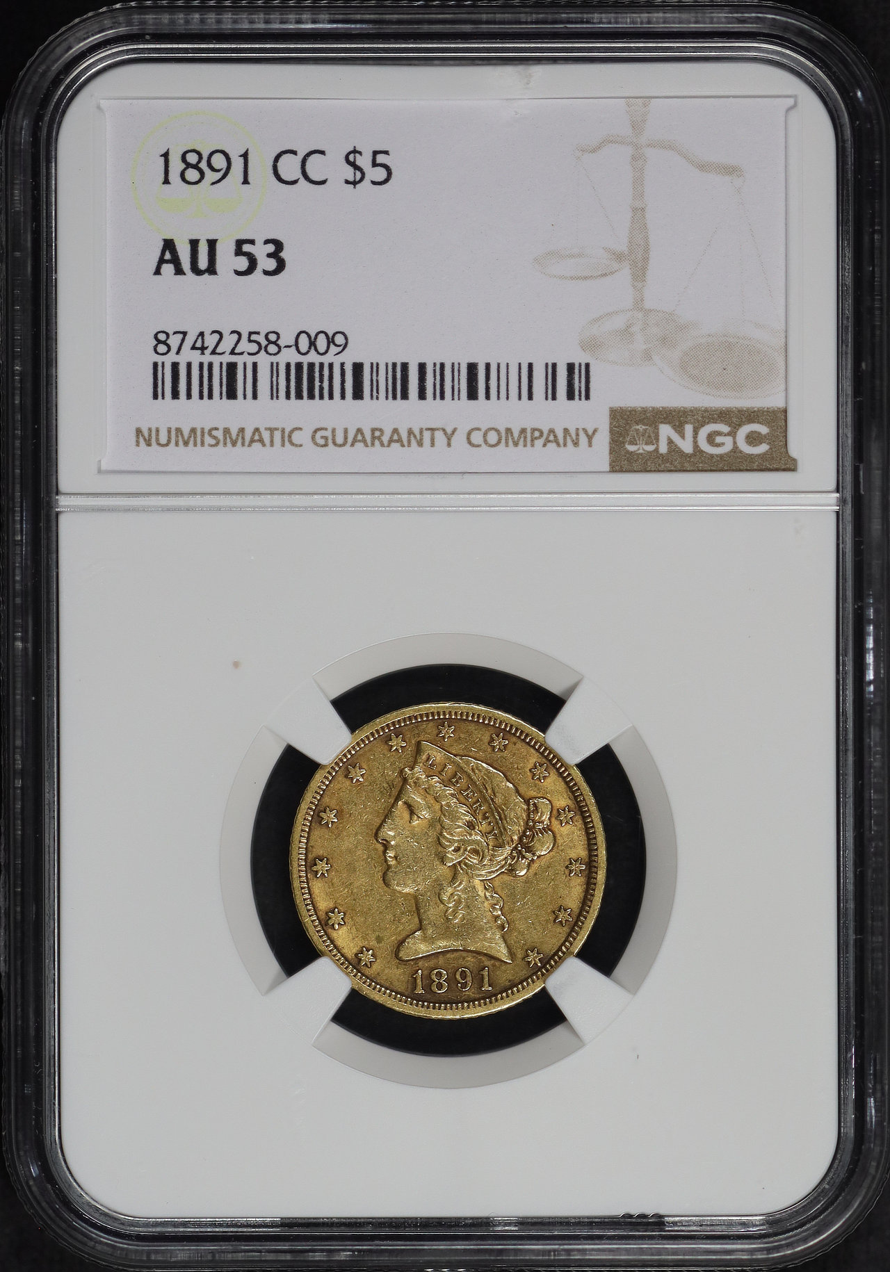 1891-CC Liberty Head $5 NGC AU-53.