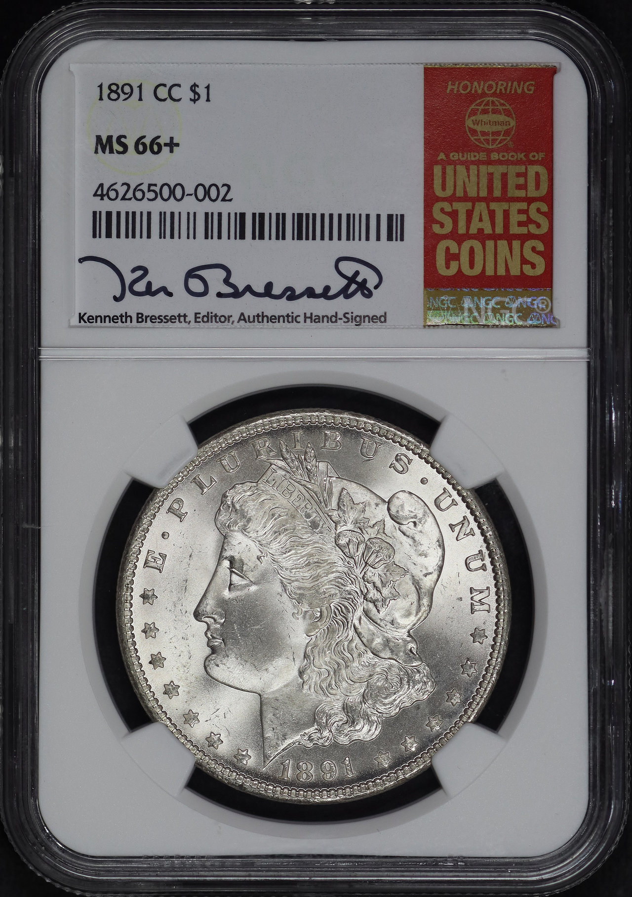 1891-CC Morgan Dollar NGC MS-66+ Kenneth Bressett Signature Whitman Red Book Label