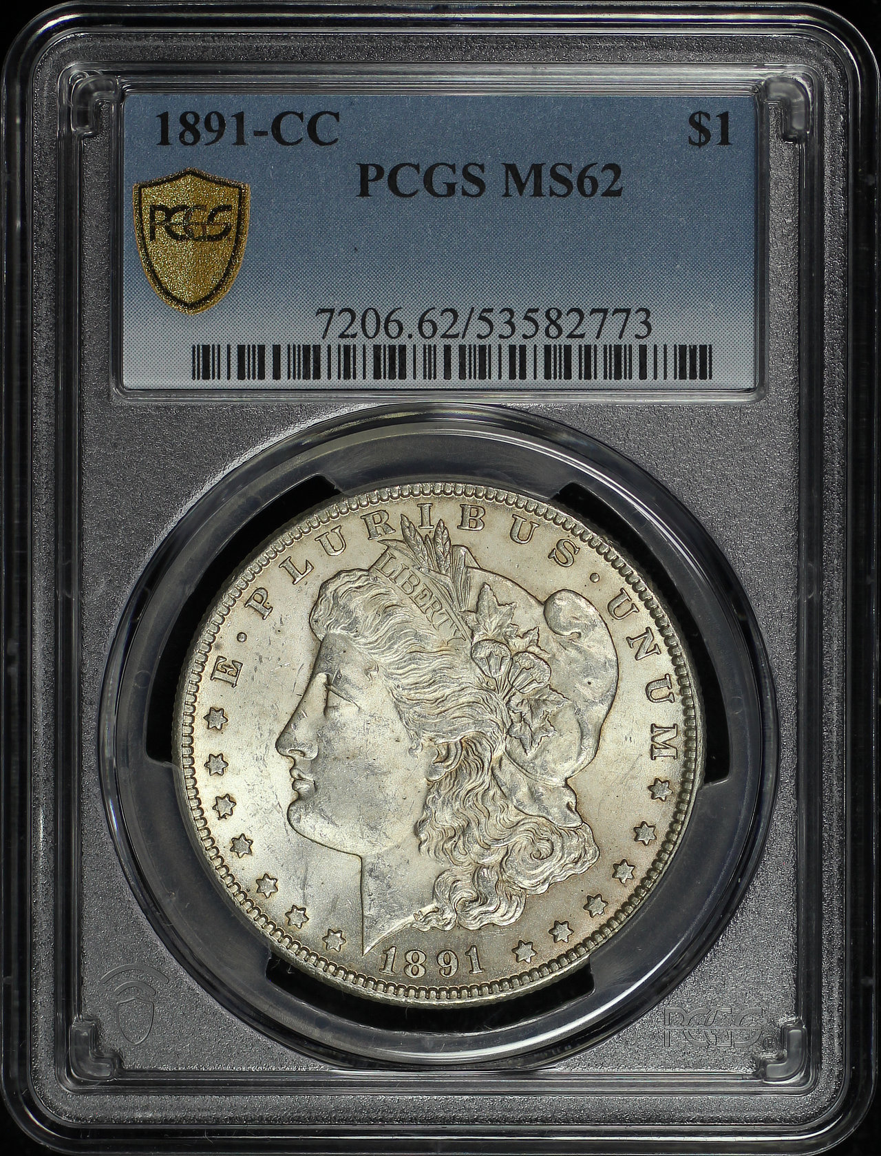 1891-CC Morgan Dollar PCGS MS-62 designed by George T. Morgan.