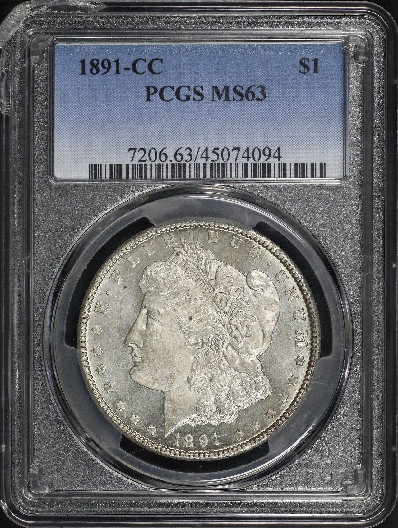 1891-CC Morgan Dollar PCGS MS-63 designed by George T. Morgan.