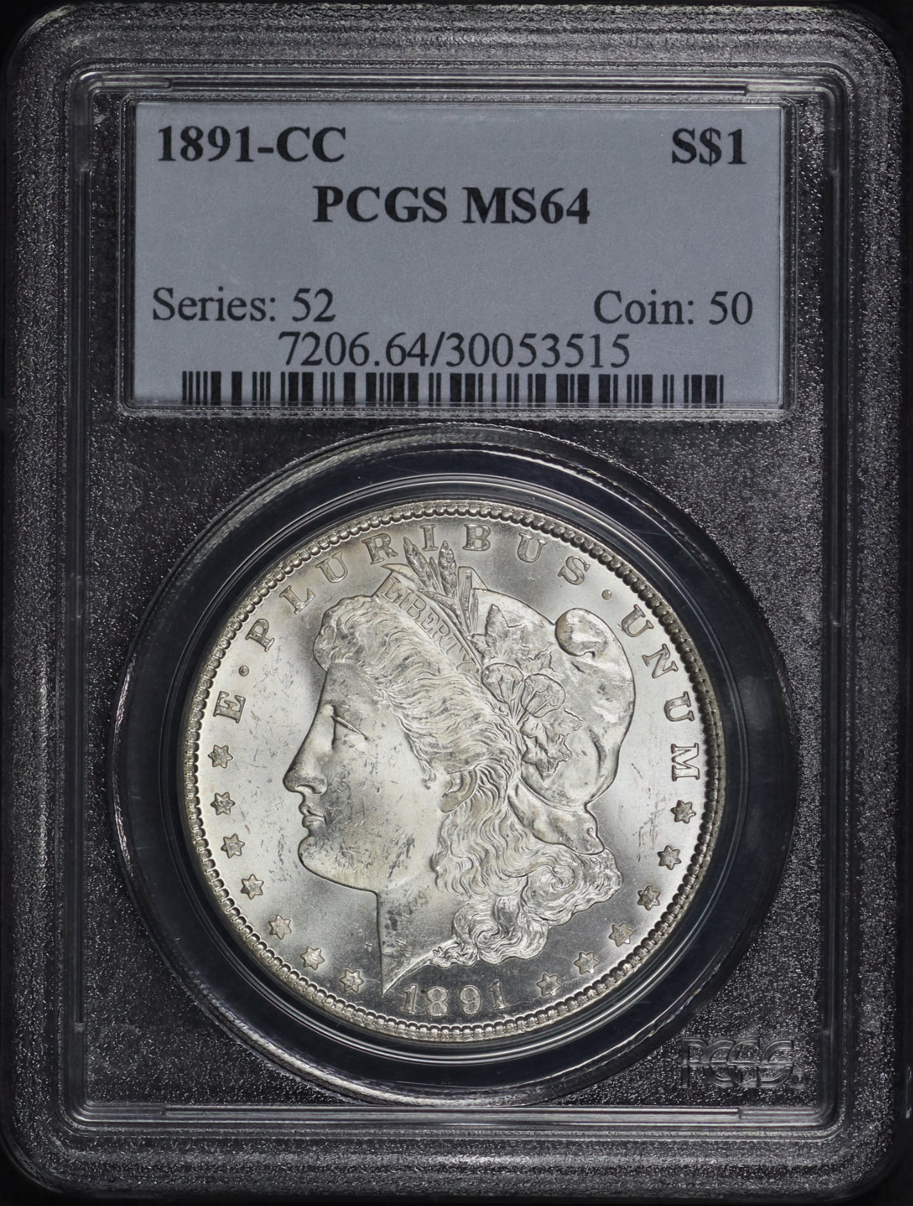 1891-CC Morgan Dollar PCGS MS-64 designed by George T. Morgan.