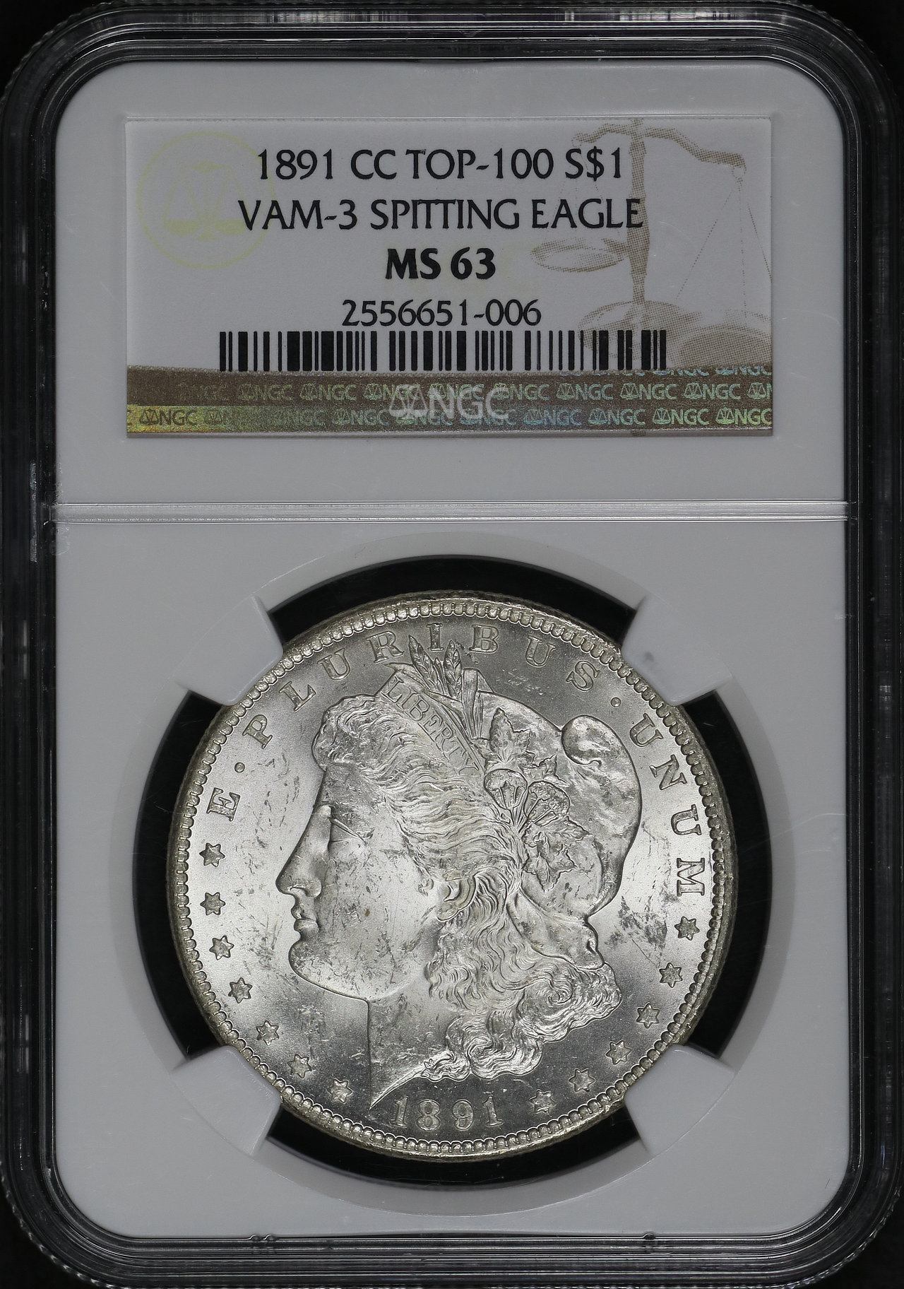 1891-CC Top-100 Morgan Dollar VAM-3 Spitting Eagle NGC MS-63.