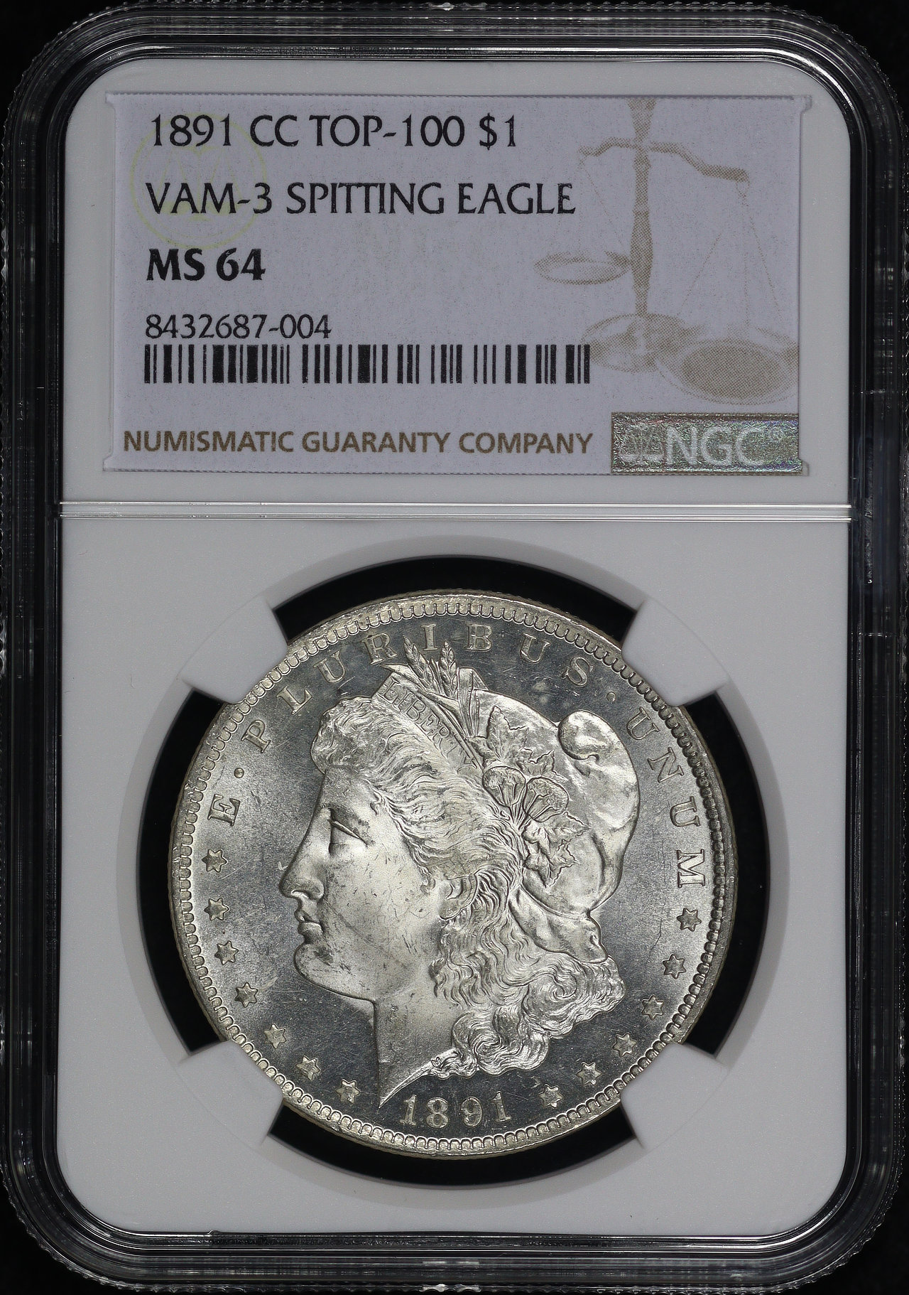 1891-CC Top-100 VAM-3 Spitting Eagle Morgan Dollar NGC MS-64.