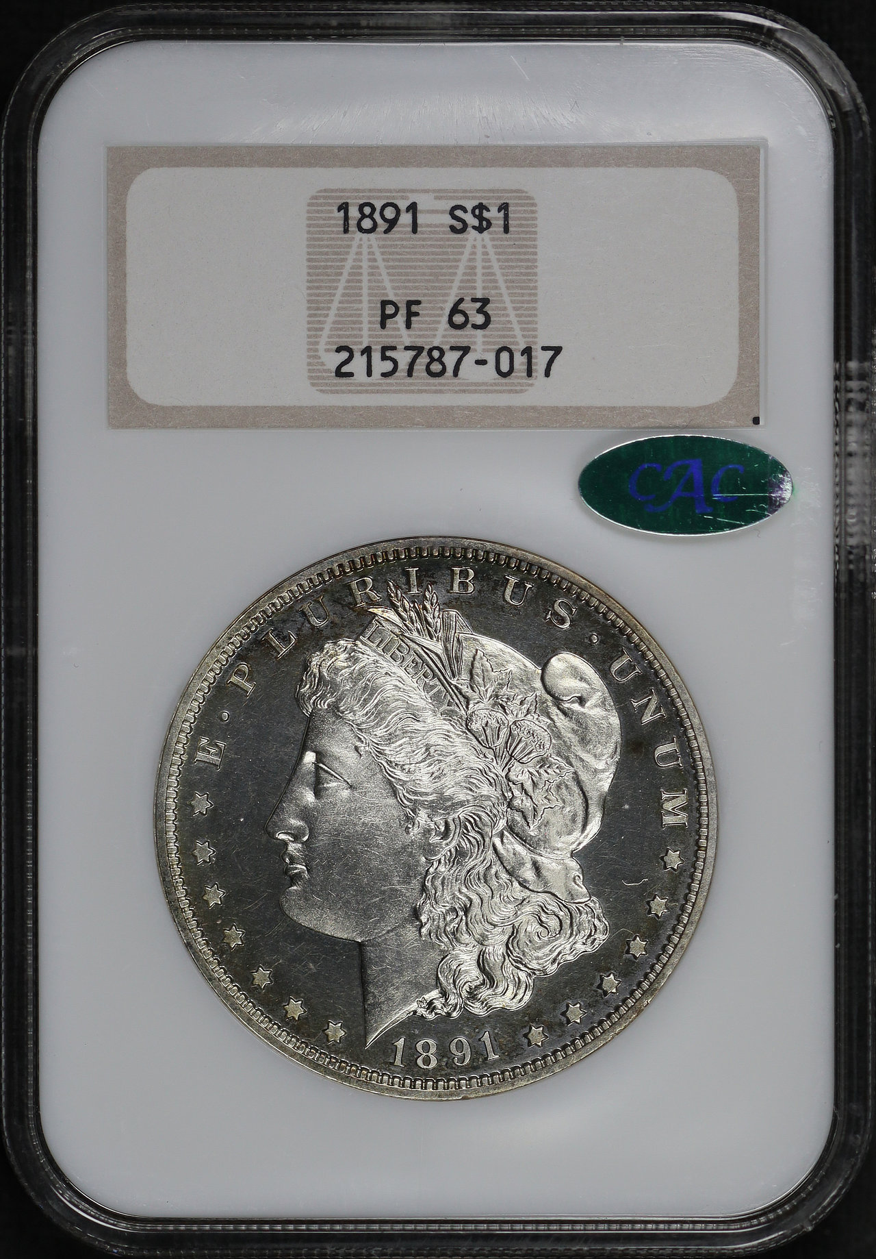1891 Morgan Dollar NGC PF-63 CAC Old Fatty Holder.