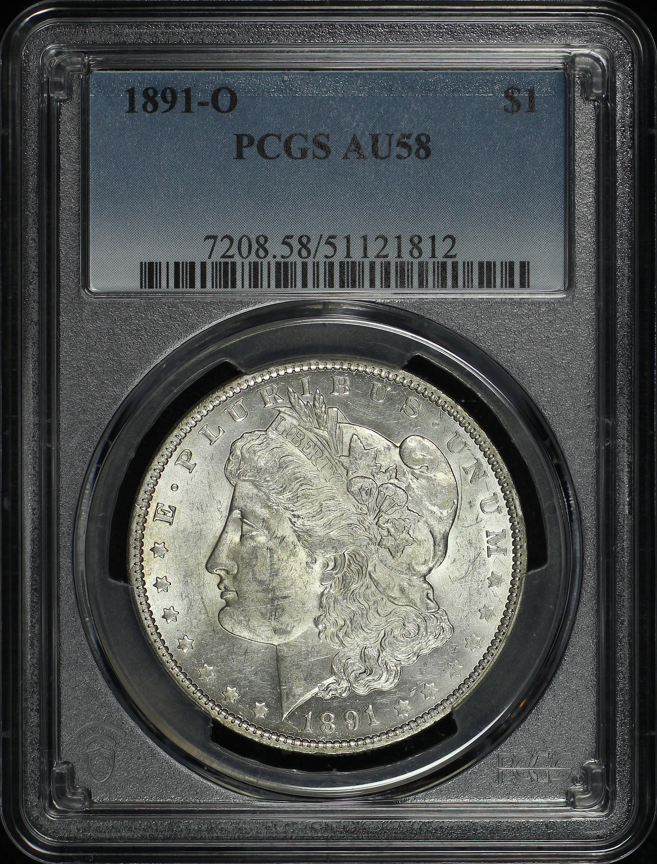 1891-O Morgan Dollar PCGS AU-58 designed by George T. Morgan.