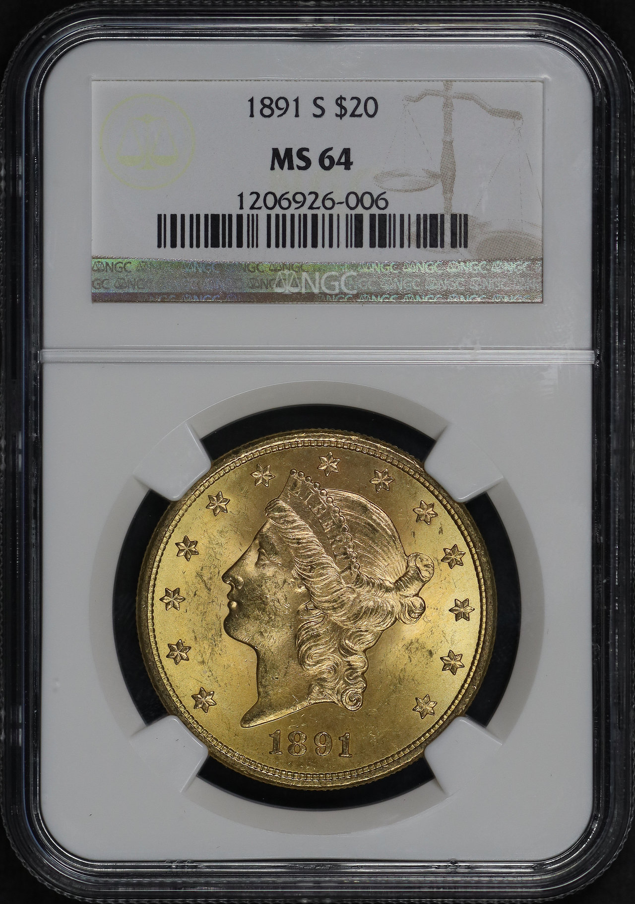 1891-S Liberty Head $20 Type 3 NGC MS-64.